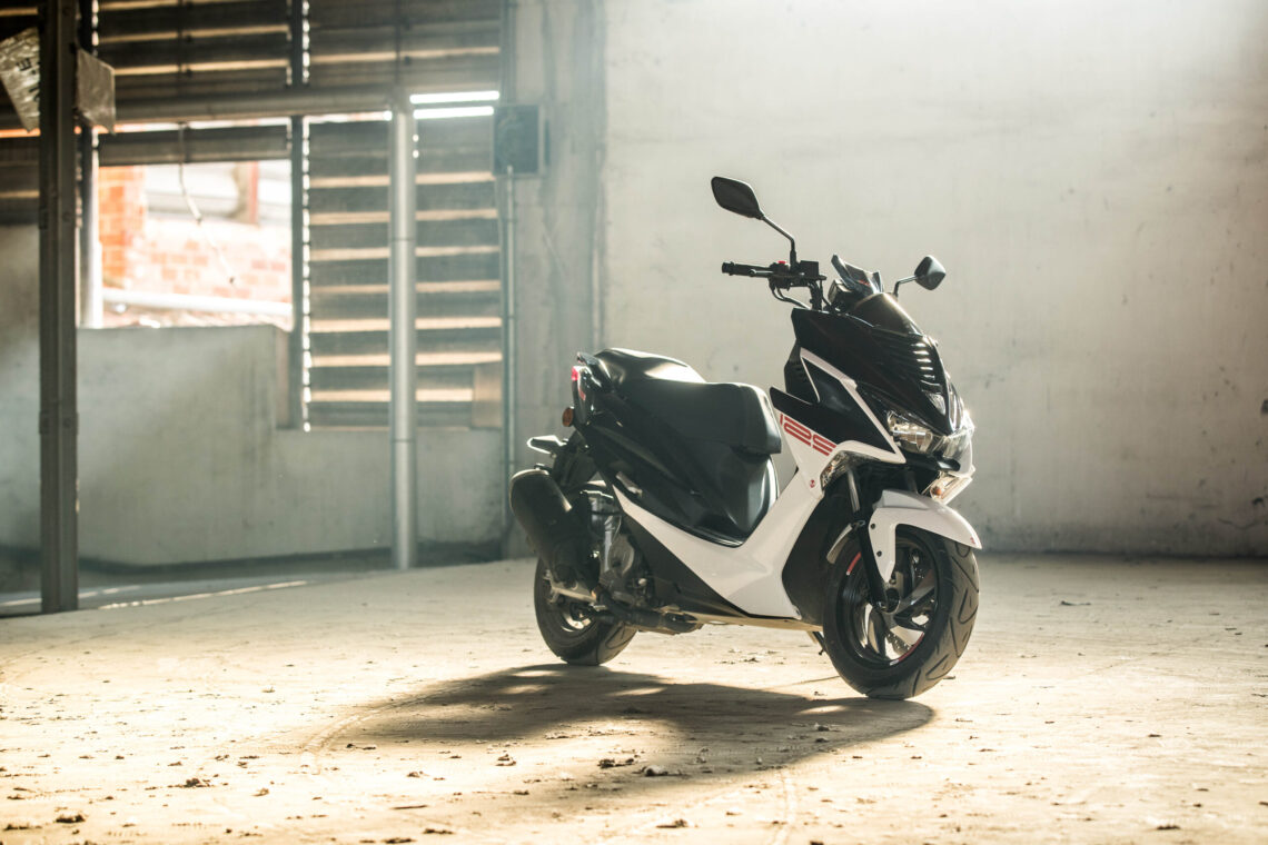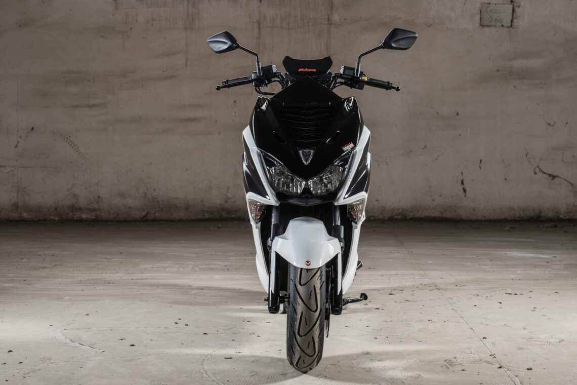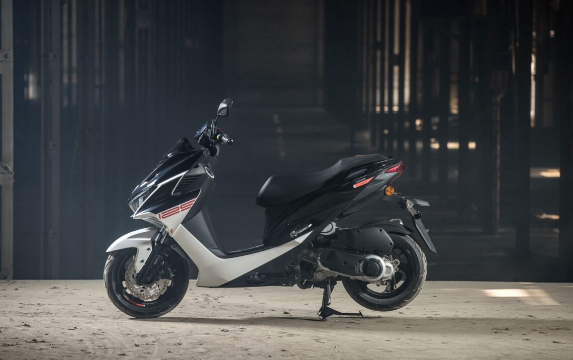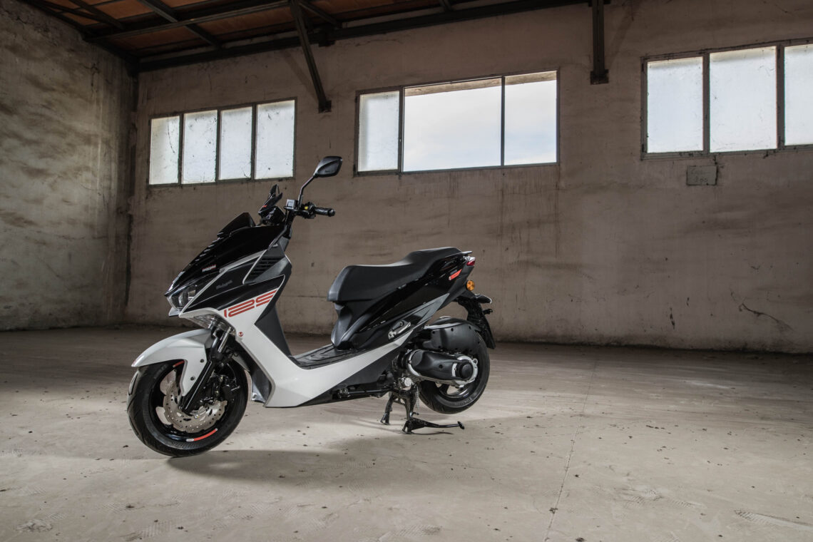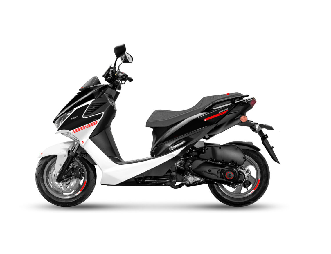 Este scooter 125 deportivo llega en dos combinaciones de color: Negro/Blanco o Negro/Gris.