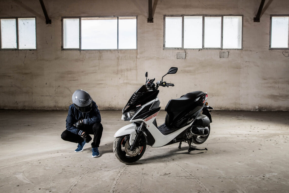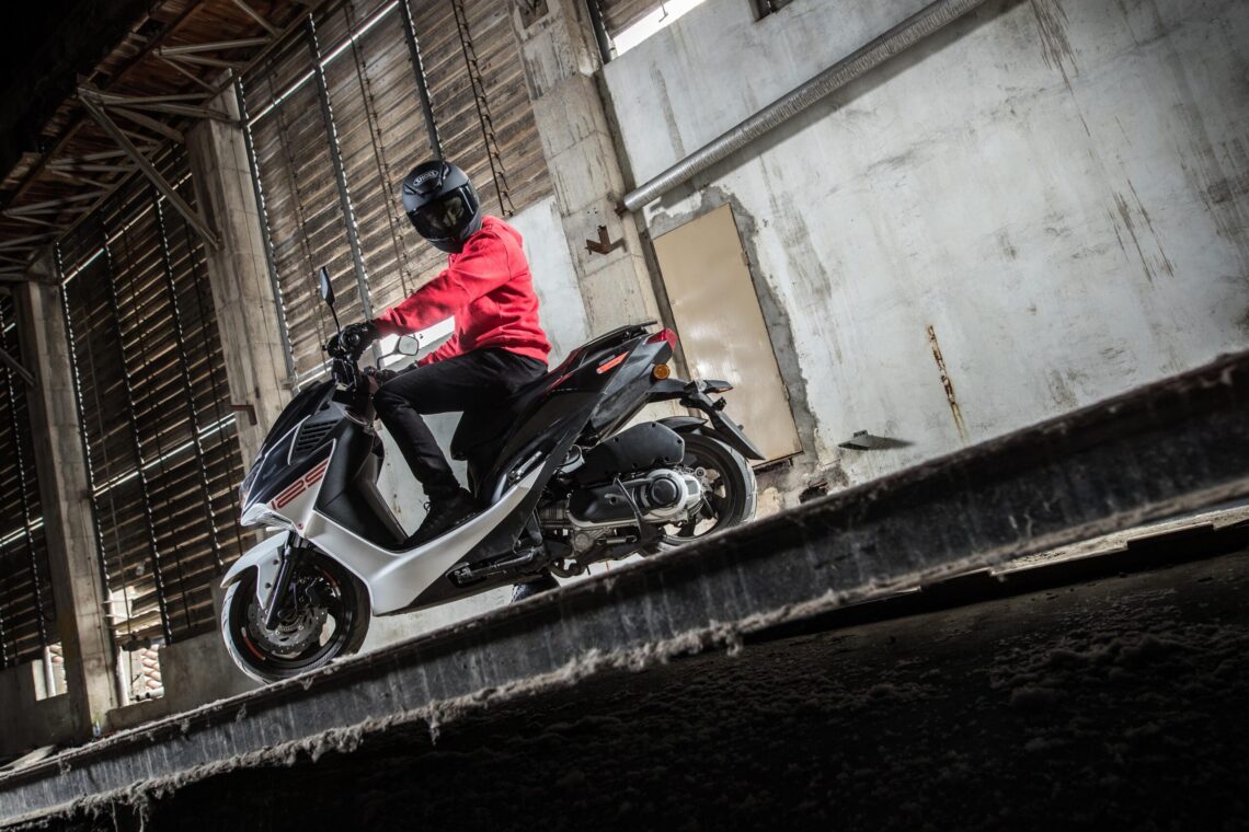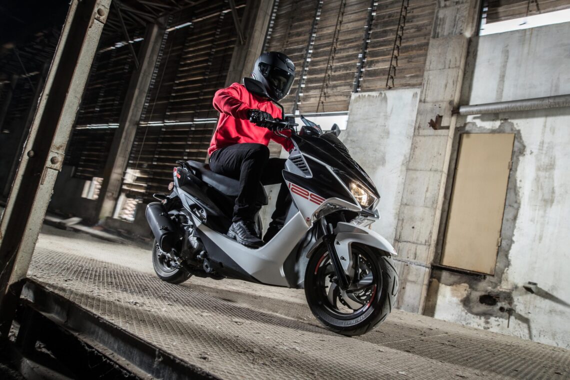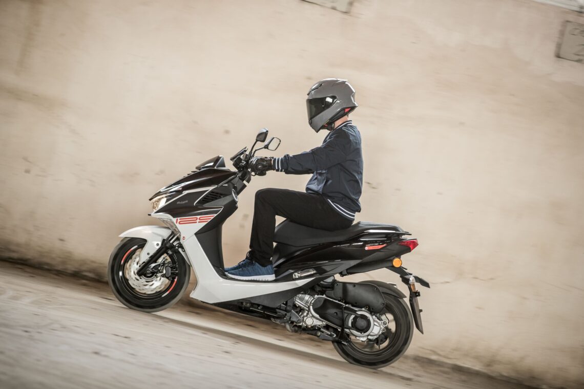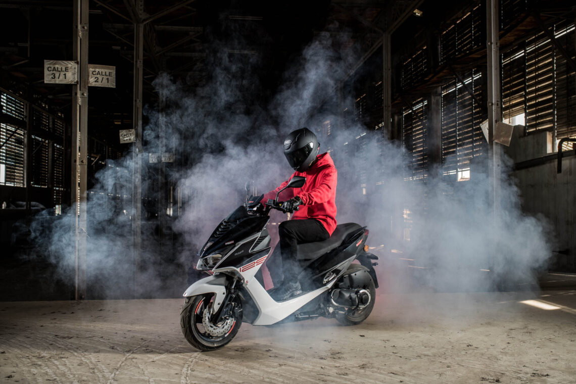 Este scooter 125 deportivo llega en dos combinaciones de color: Negro/Blanco o Negro/Gris.
