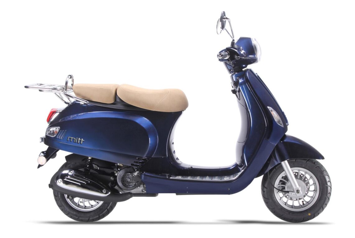 El Mitt 125 RT es el scooter 125 de la marca distribuida por Jets Marivent. Se trata de un scooter con una línea más clásica y un diseño muy similar al de scooters retro. Monta un motor monocilíndrico de 4T refrigrado por aire de 125 cc con una potencia máxima de 9 cv. Este motor es el empleado en la mayoría de modelos 125 de la marca, solo que en este caso la transmisión es la que encontramos en un scooter por norma general; variador contínuo.