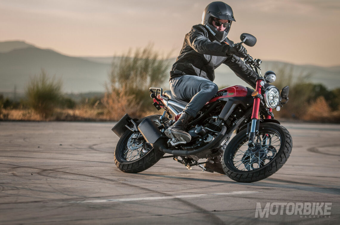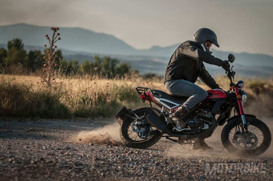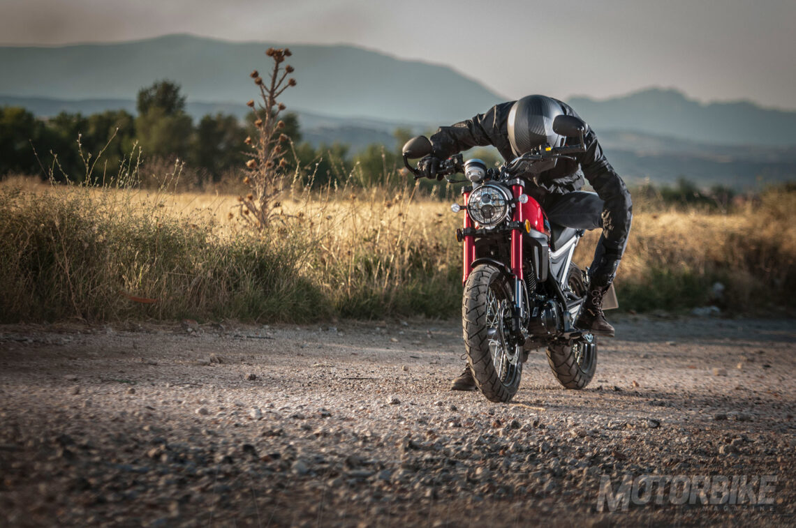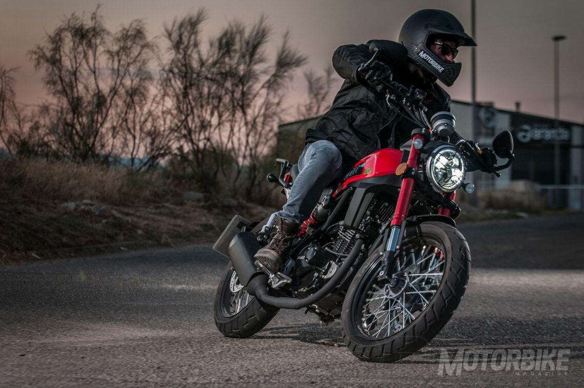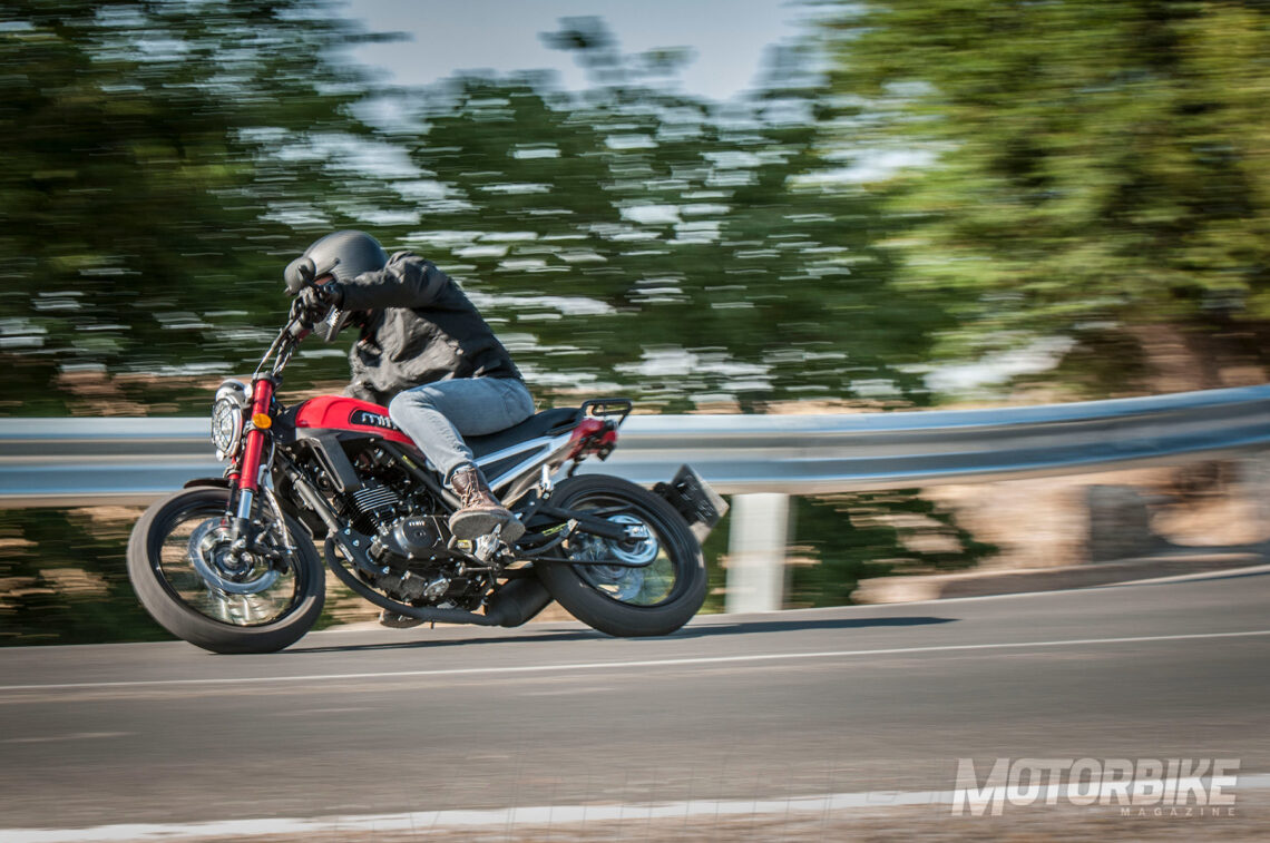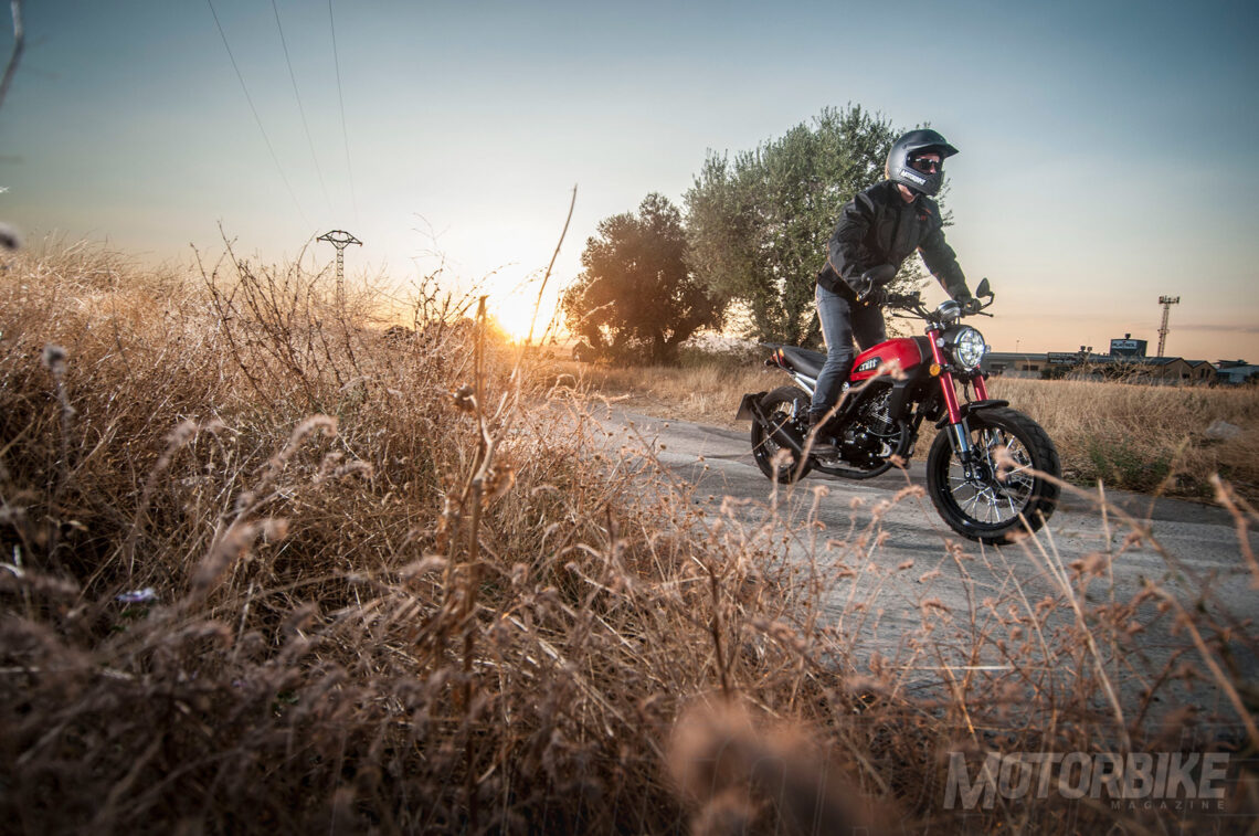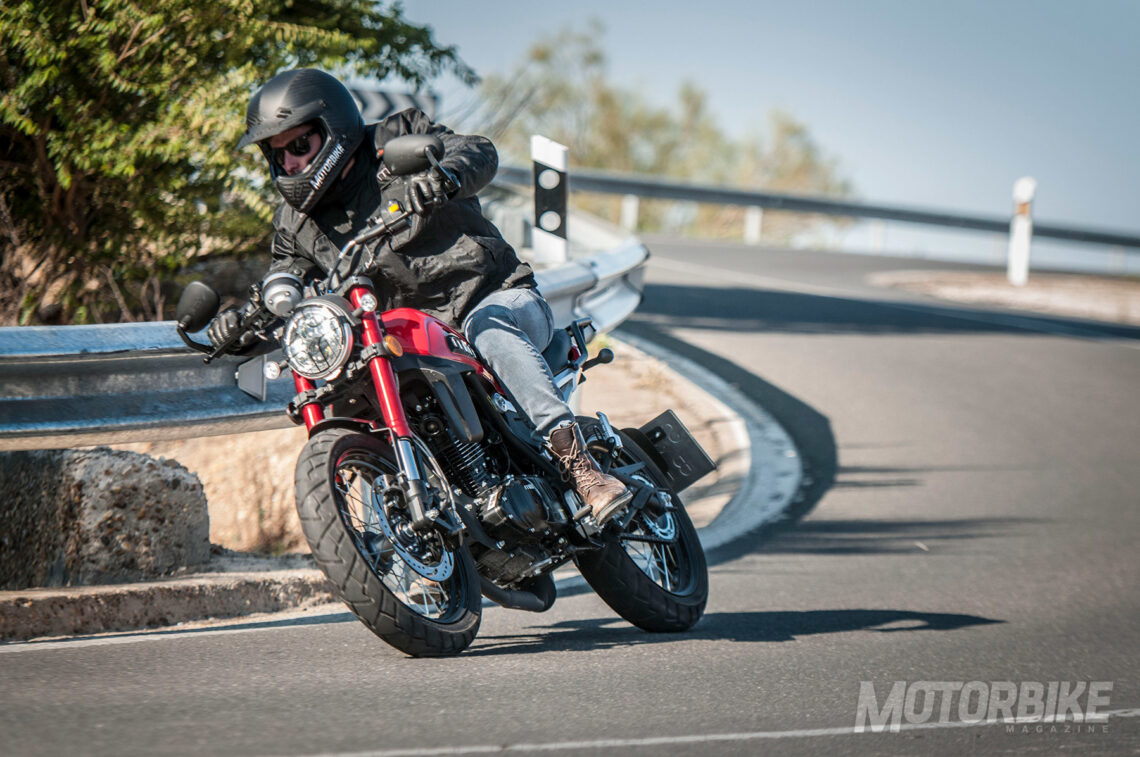 Por carretera rinde con facilidad, gracias a sus neumáticos más trail asfálticos que off road, a diferencia de la Mitt 125 Scrambler. La parte ciclo cuenta con un poderoso tren delantero invertido y en el tren trasero cuenta con un generoso amortiguador trasero bastante flexible y cómodo. Quizá para largos recorridos con carga o pasajero sea algo blando, pero tan fácil como apretar la precarga un poco. El tren delantero se percibe más firme, aunque algo impreciso cuando nos salimos del asfalto, básicamente por los neumáticos.