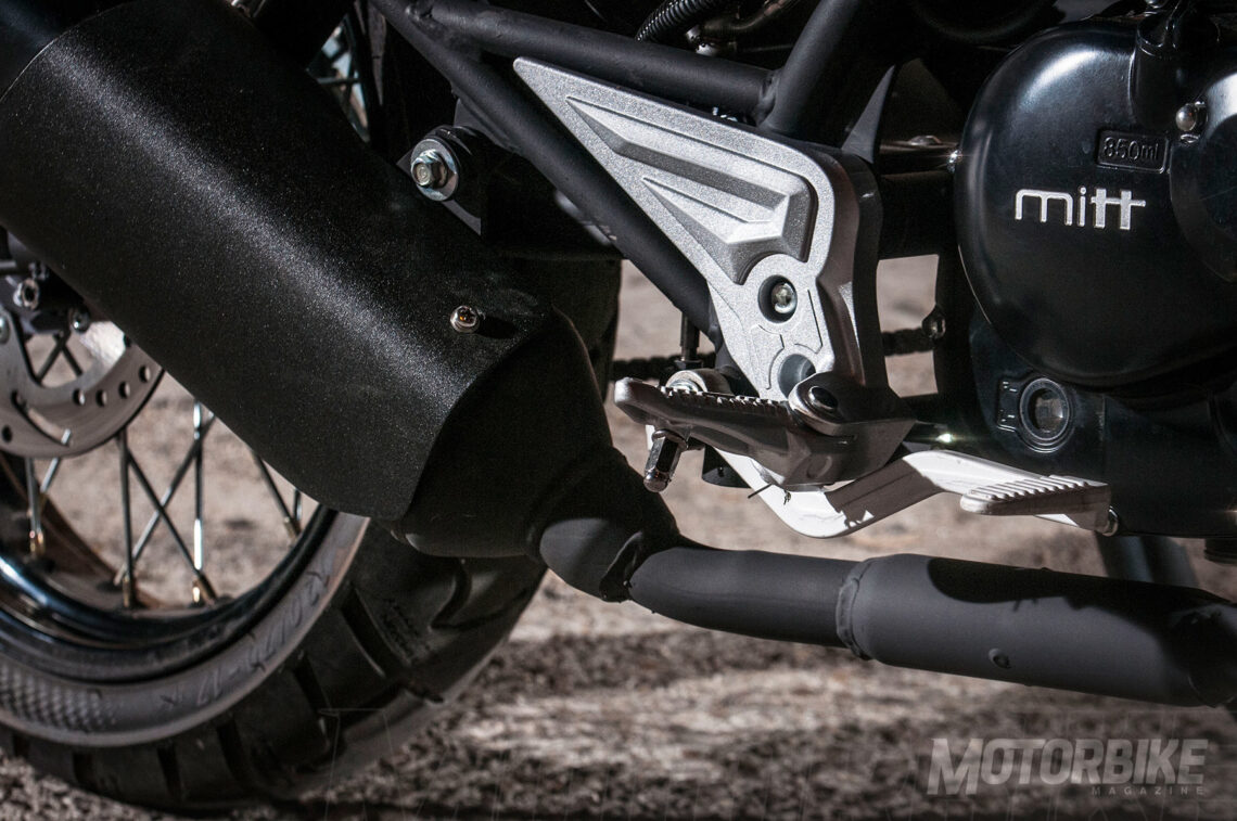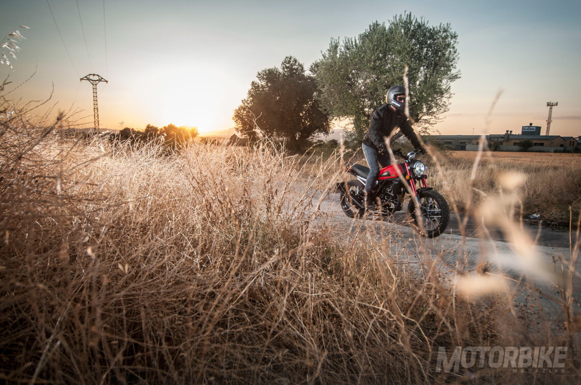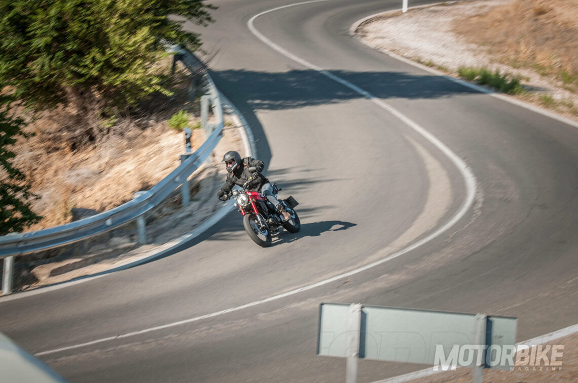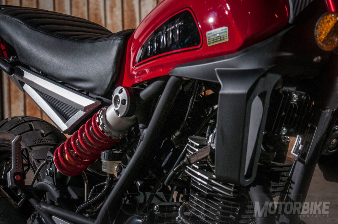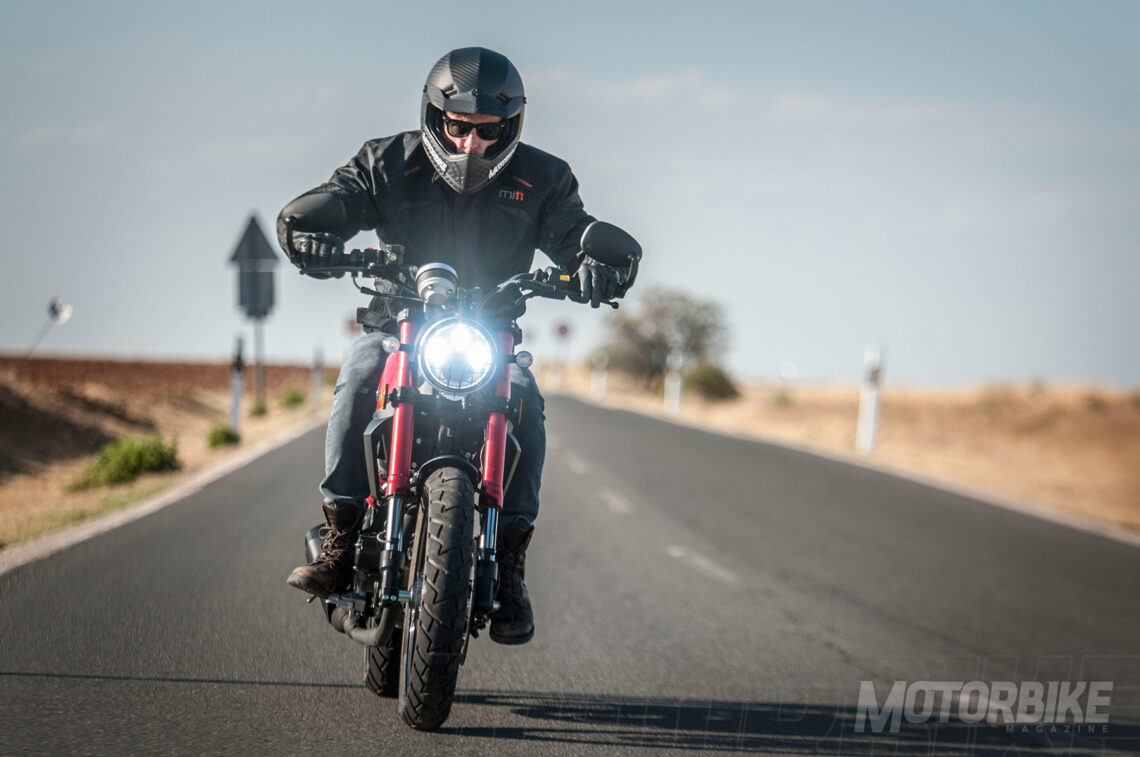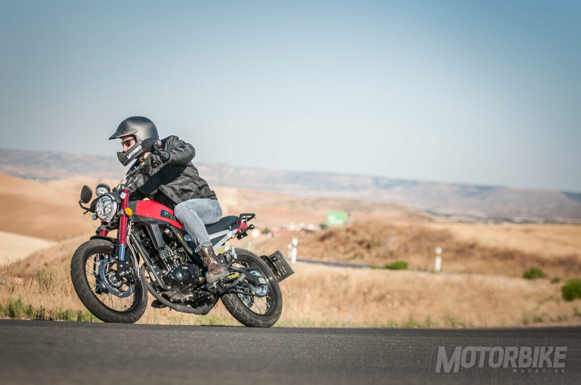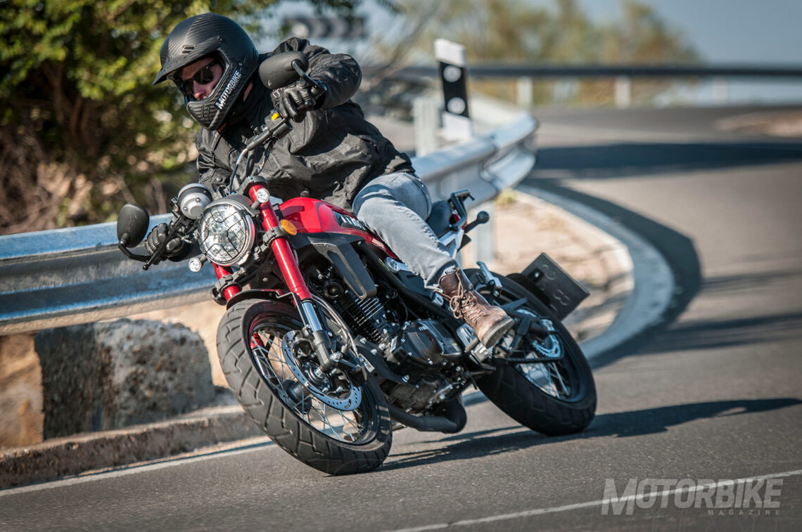 Por carretera rinde con facilidad, gracias a sus neumáticos más trail asfálticos que off road, a diferencia de la Mitt 125 Scrambler. La parte ciclo cuenta con un poderoso tren delantero invertido y en el tren trasero cuenta con un generoso amortiguador trasero bastante flexible y cómodo. Quizá para largos recorridos con carga o pasajero sea algo blando, pero tan fácil como apretar la precarga un poco. El tren delantero se percibe más firme, aunque algo impreciso cuando nos salimos del asfalto, básicamente por los neumáticos.