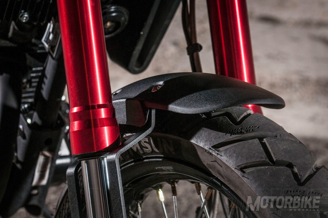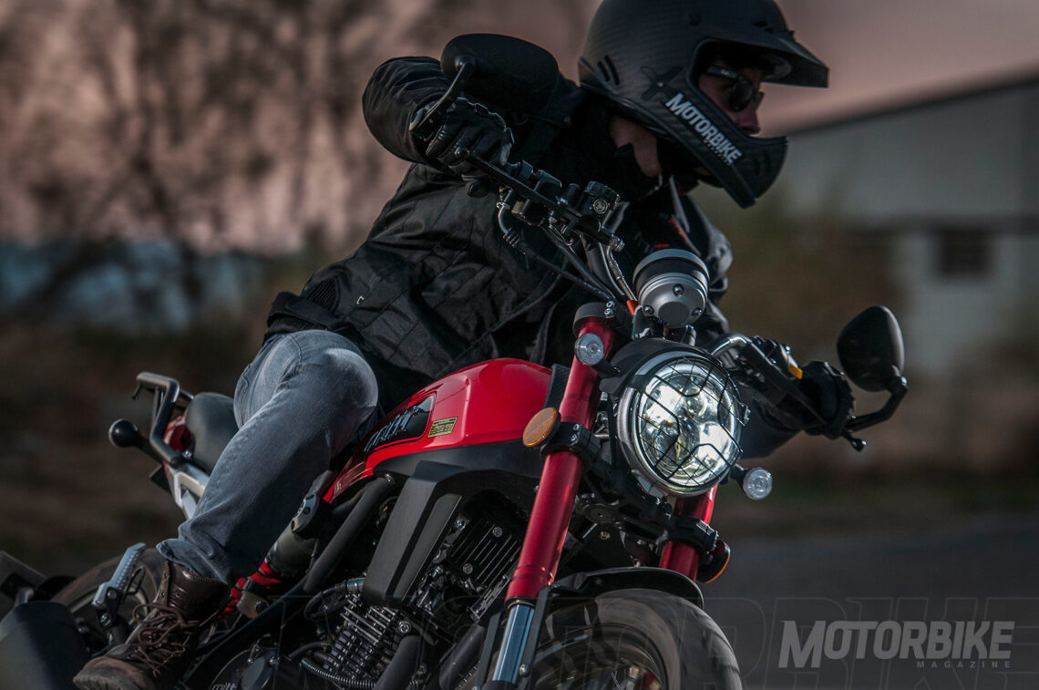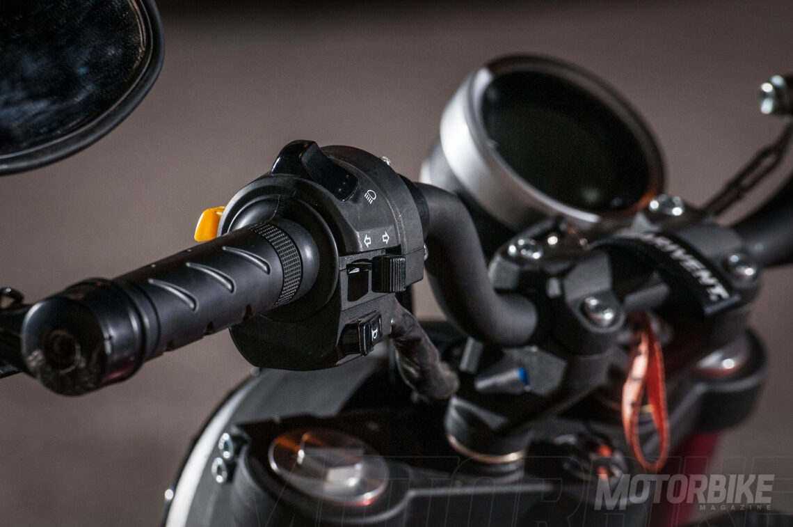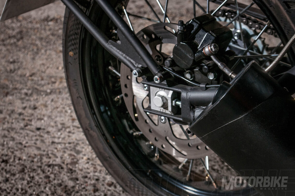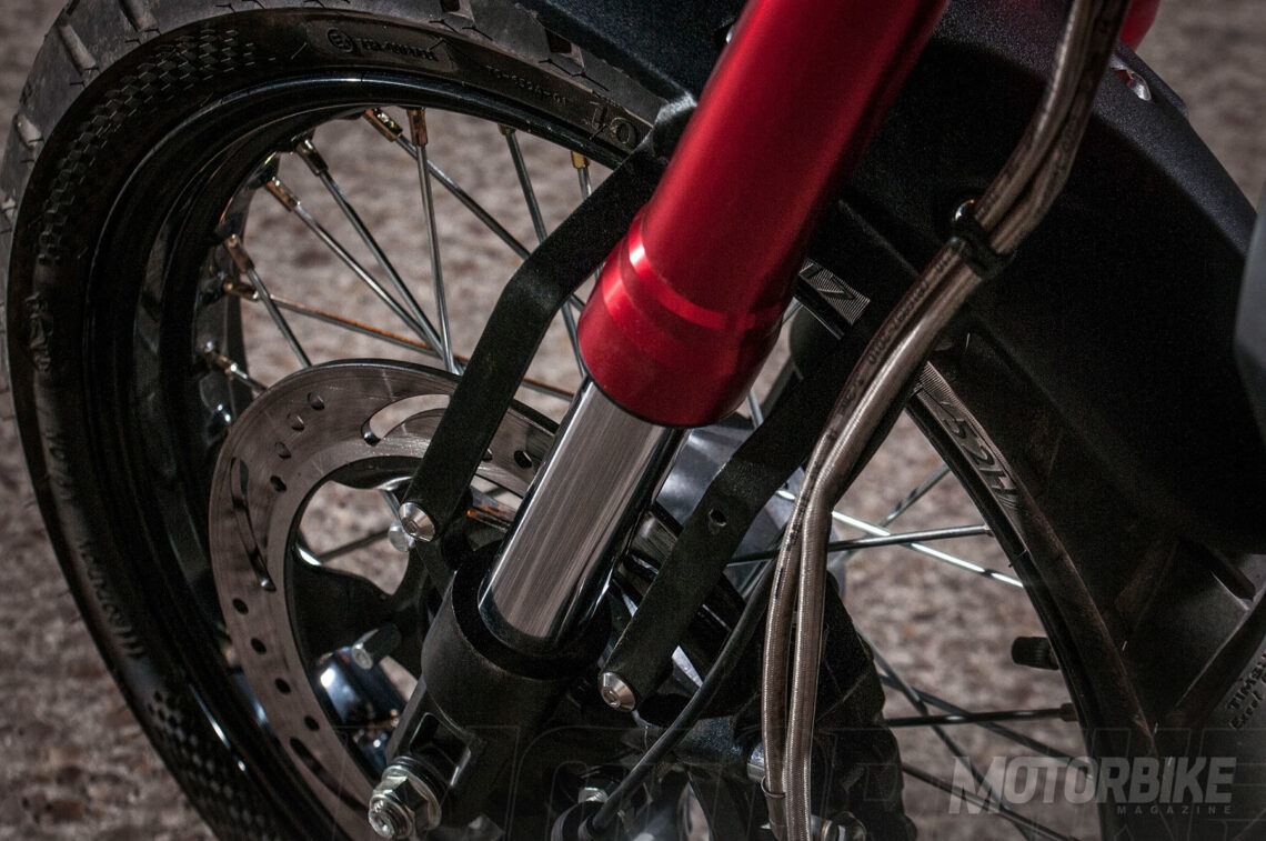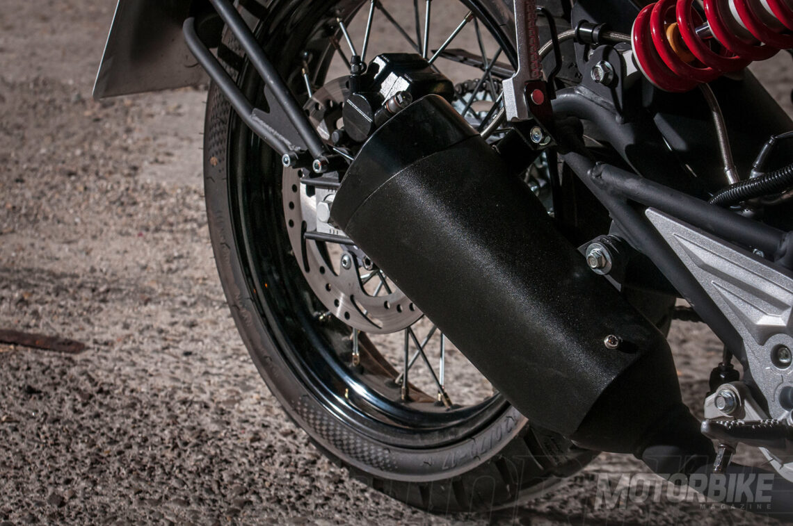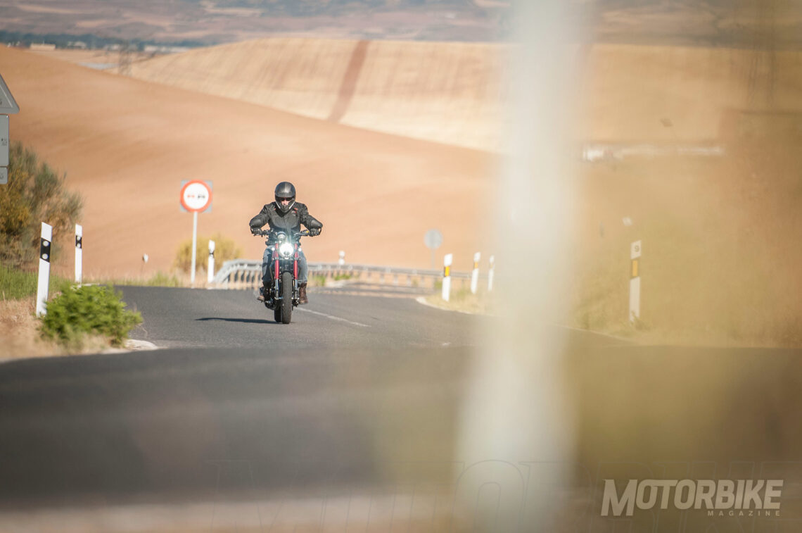 Por carretera rinde con facilidad, gracias a sus neumáticos más trail asfálticos que off road, a diferencia de la Mitt 125 Scrambler. La parte ciclo cuenta con un poderoso tren delantero invertido y en el tren trasero cuenta con un generoso amortiguador trasero bastante flexible y cómodo. Quizá para largos recorridos con carga o pasajero sea algo blando, pero tan fácil como apretar la precarga un poco. El tren delantero se percibe más firme, aunque algo impreciso cuando nos salimos del asfalto, básicamente por los neumáticos.