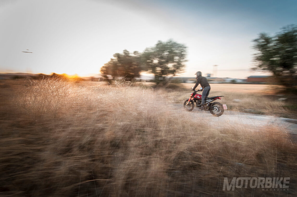 En terrenos off road, o menos asfaltados, se comporta con aptitud, aunque pide a gritos unas cubiertas con algo más de taco. Los frenos son dosificables, quizá con un poco menos de mordida de la esperada en asfalto, pero con muy buen tacto en terrenos menos firmes.