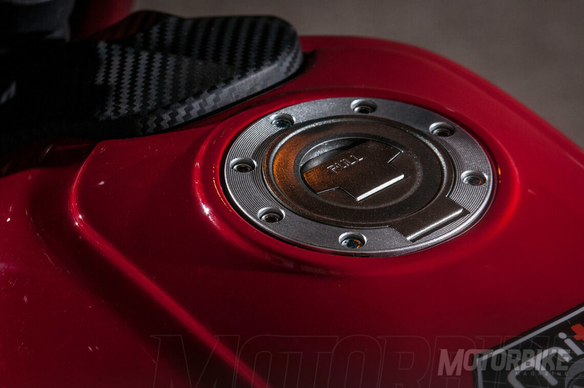 La ergonomía es muy "europea", con una posición de conducción bastante alta para ser una 125, aunque media en términos generales. El manillar es ancho y abierto en forma de V, para mejorar la ergonomía en conducción erguida, así como las estriberas, buscando una posición algo más estirada.