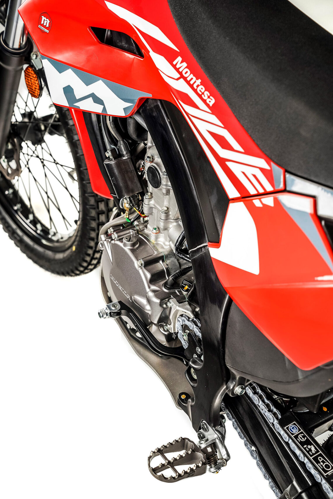 El pedal de arranque de la Montesa 4Ride 2023 también es nuevo, ahora más largo, lo cual facilita la puesta en marcha de la moto.