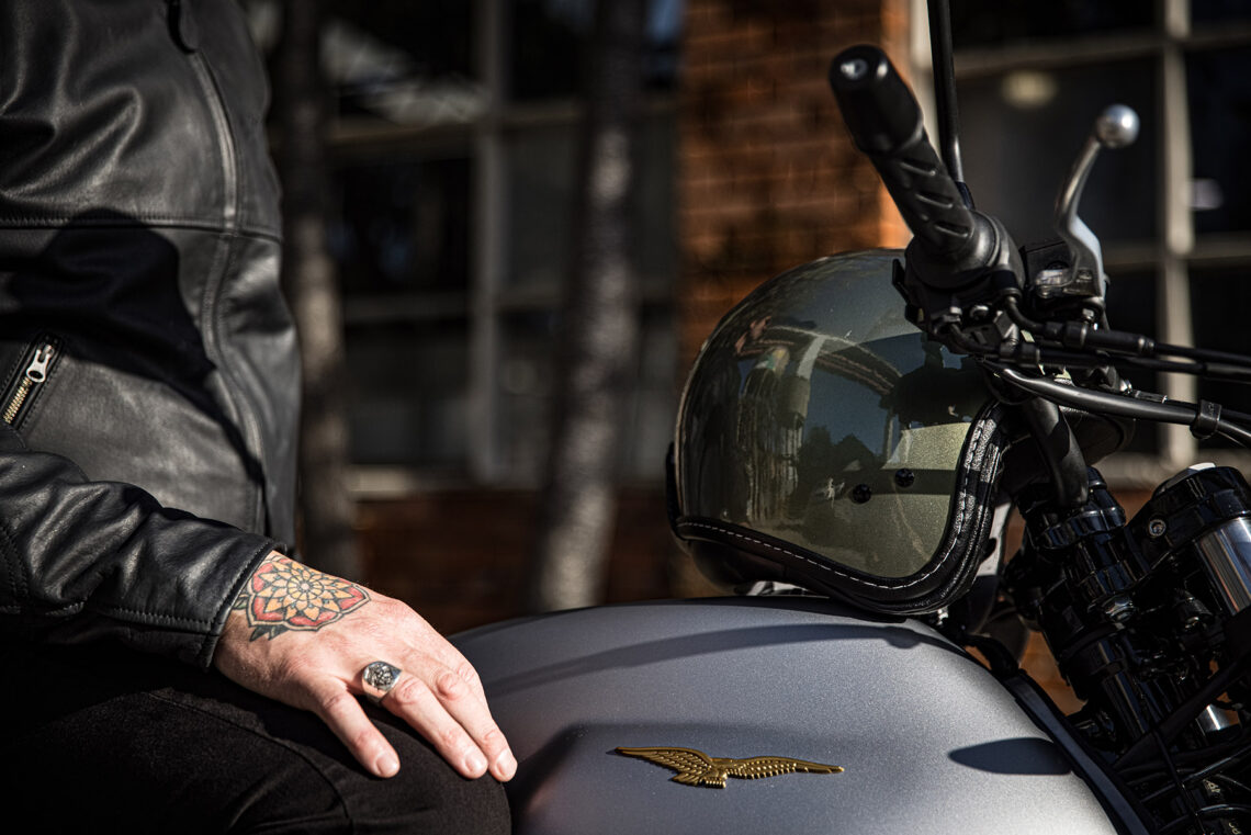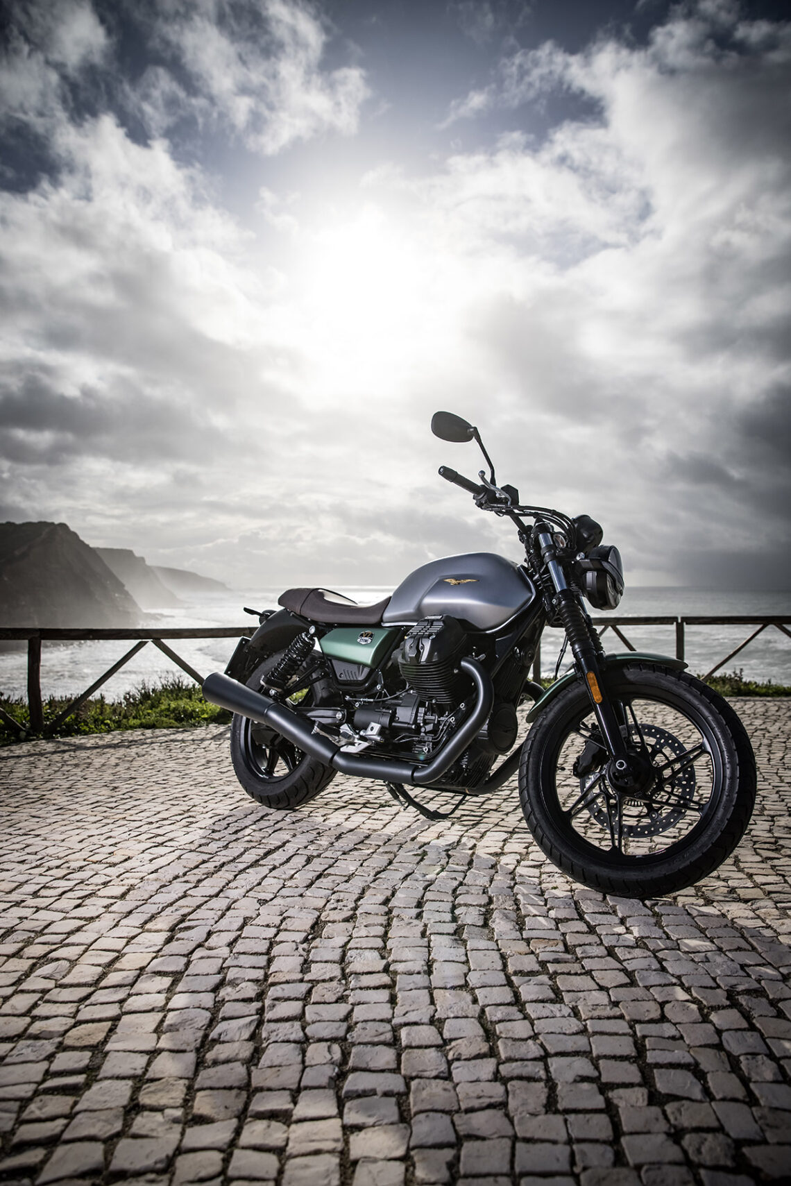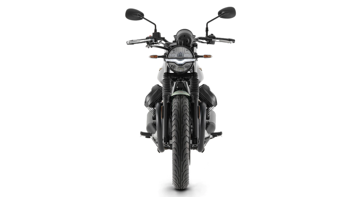 - Distintivo especial: El Águila aparece acabado en dorado y el logo específico de los 100 años de Moto Guzzi en el guardabarros.