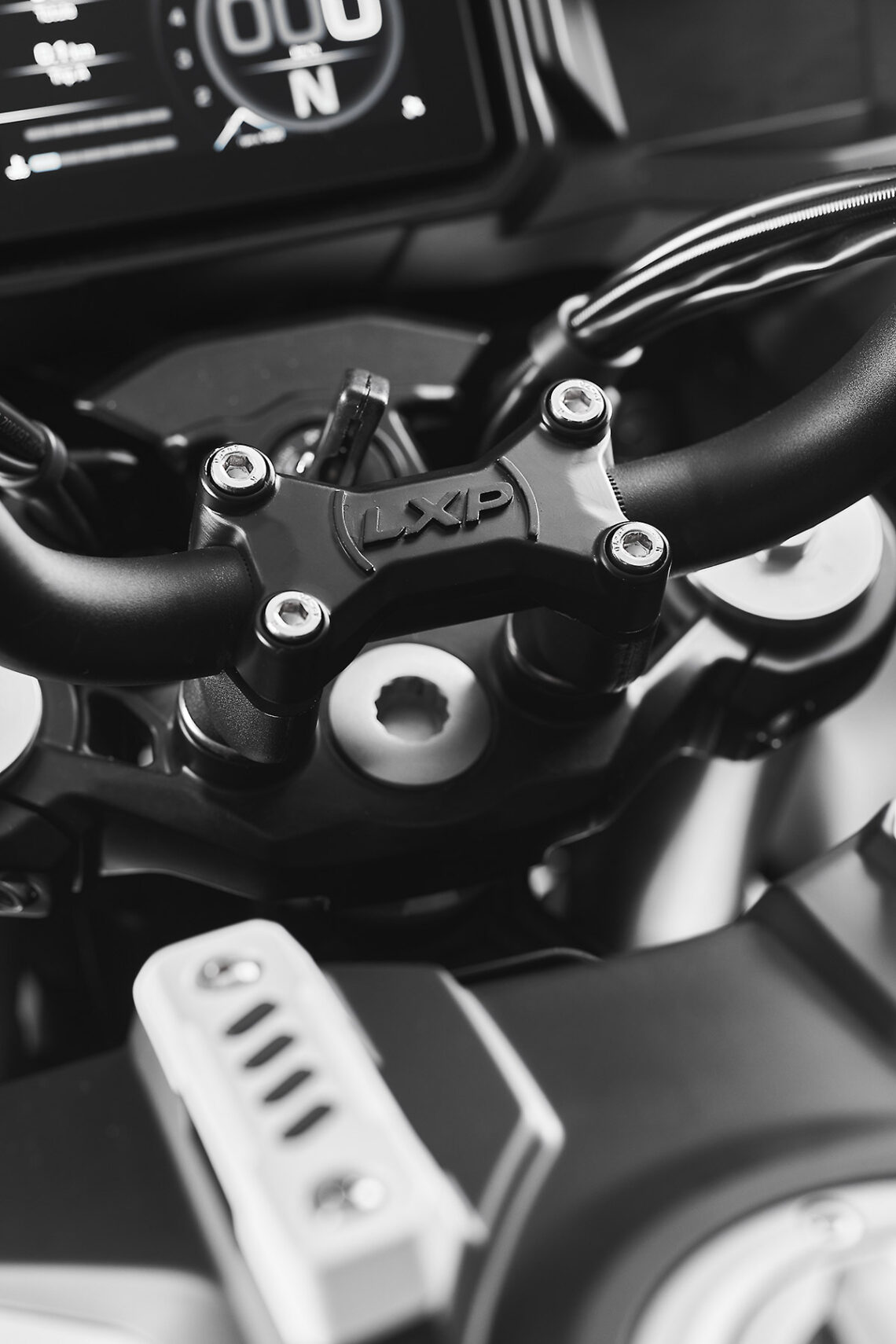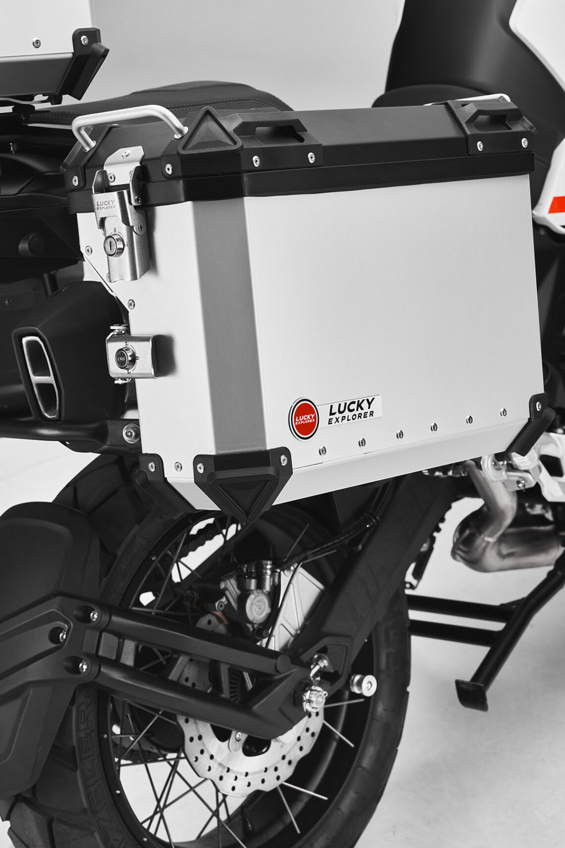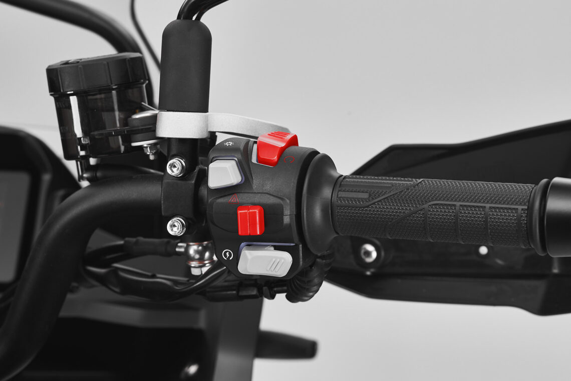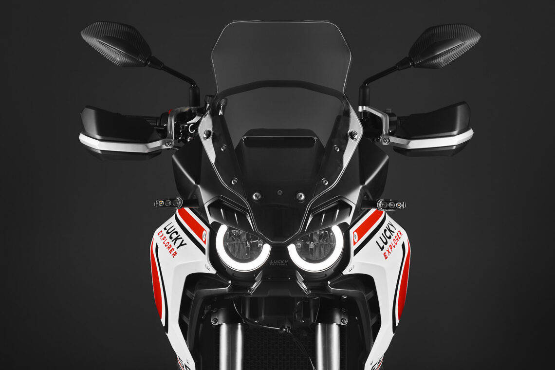 Por fuera, la MV Agusta Lucky Explorer 5.5 derrocha una actitud off-road muy clara y ya son características sus ópticas delanteras. Cuenta con ciertas ayudas electrónicas que ayudan al rendimiento y a la seguridad con gran equilibrio. Sabemos que respecto a su primer prototipo el modelo base se ha actualizado significativamente en su electrónica, mecánica y chasis, con los técnicos de Schiranna trabajando por conseguir especificaciones muy particulares.
