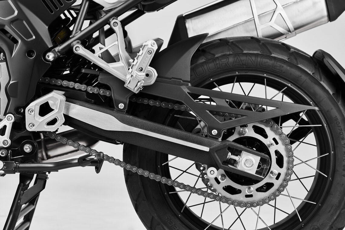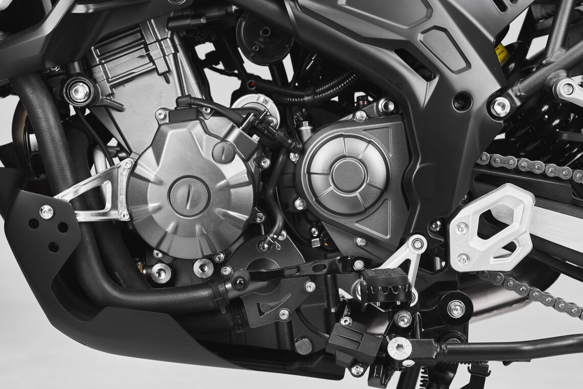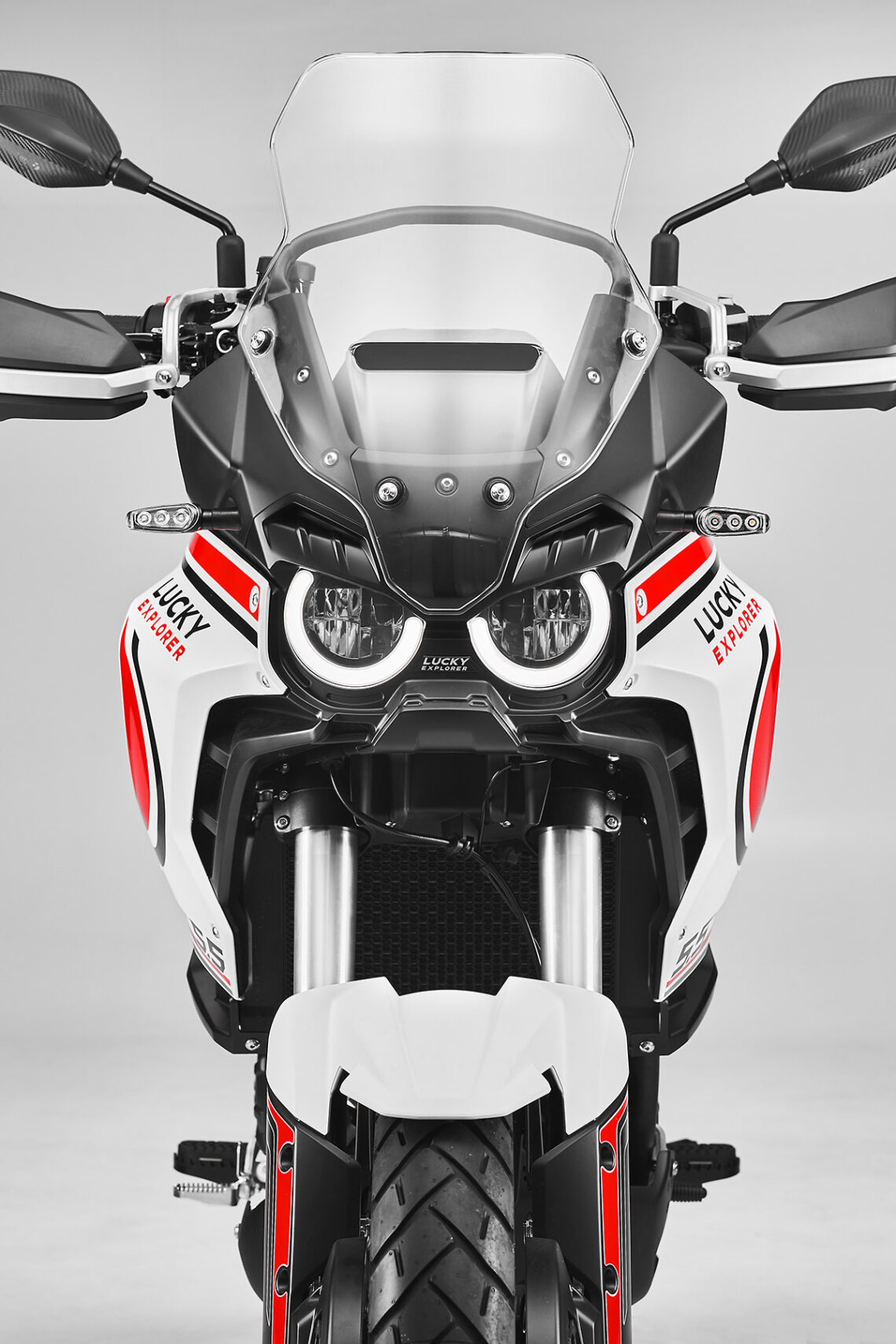 En concreto, la MV Agusta Lucky Explorer 5.5 se ha realizado en colaboración con el socio chino QJ y se inspira en la mítica Cagiva Elefant. A pesar de ser una moto trail (rueda delantera de 19" y llantas de radios) de media cilindrada, parece mucho más grande. El propulsor es un bicilíndrico en línea de refrigeración líquida, DOHC, con una cilindrada de 554 cc, con 70,5 mm de diámetro y 71 mm de carrera, lo que lo hará seguramente compatible con el carnet A2.
