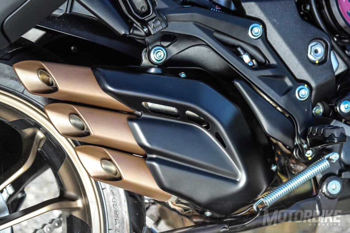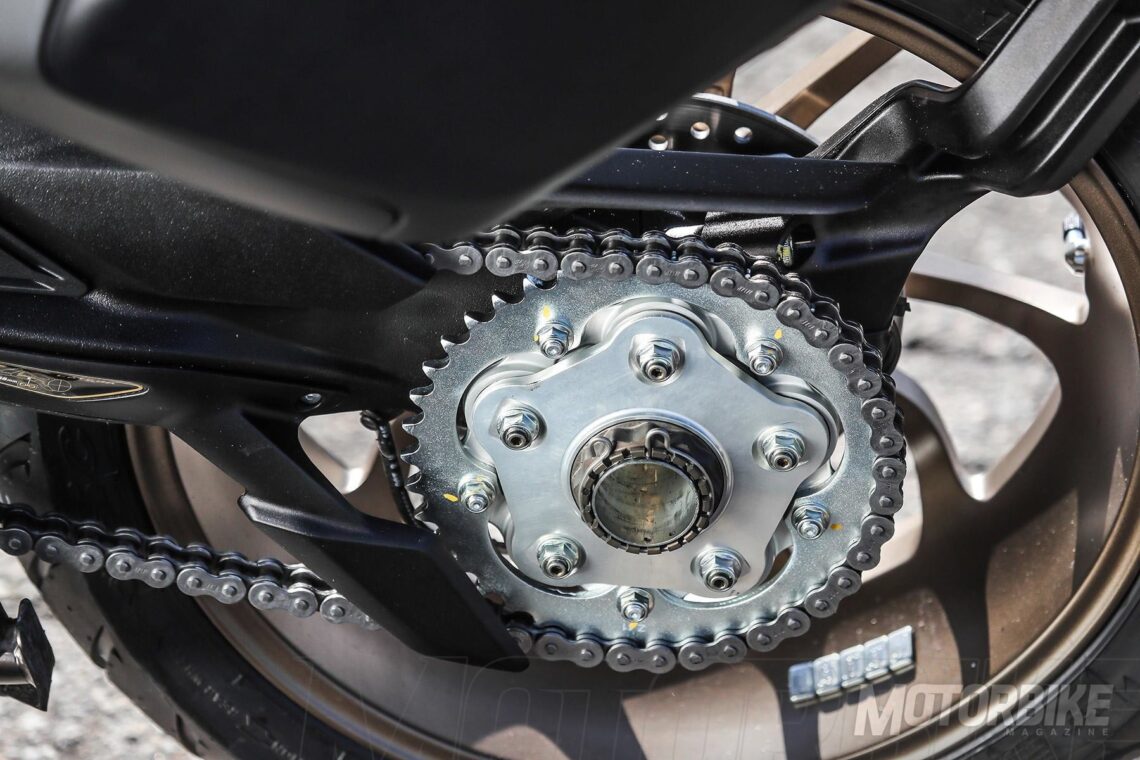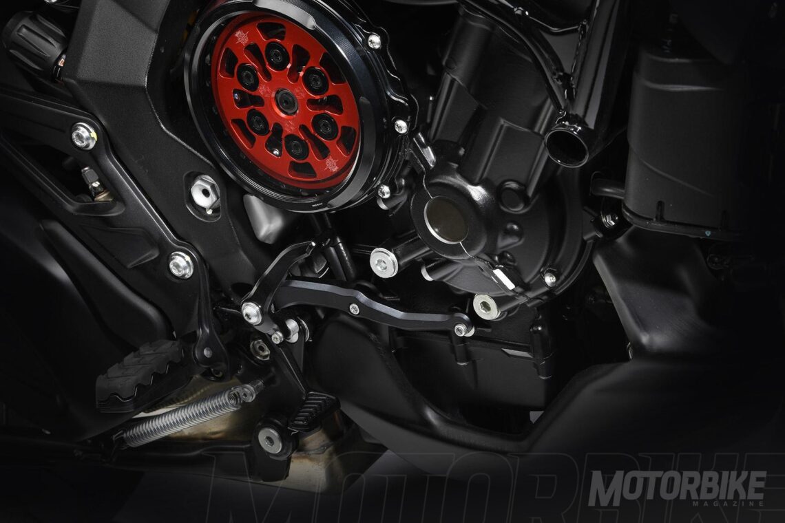 Otra de sus curiosidades es la tapa transparente del embrague, por primera vez en una moto de serie.