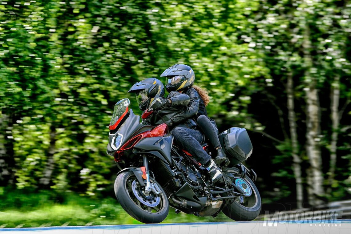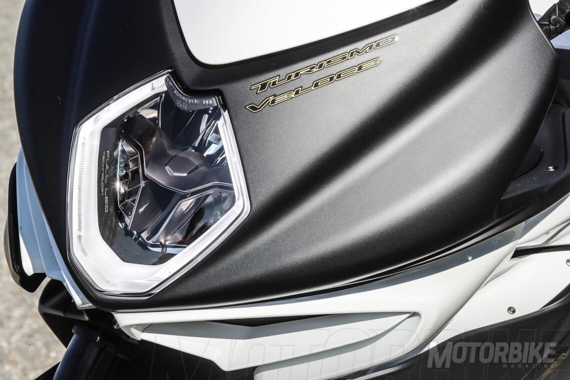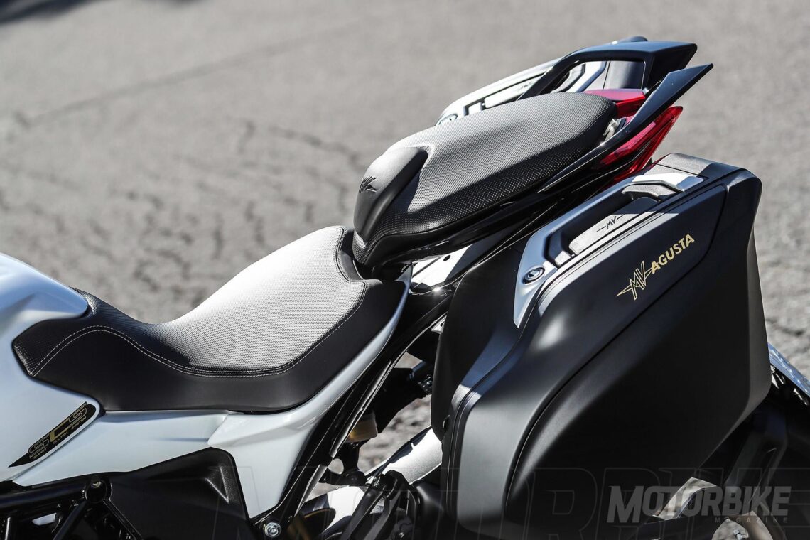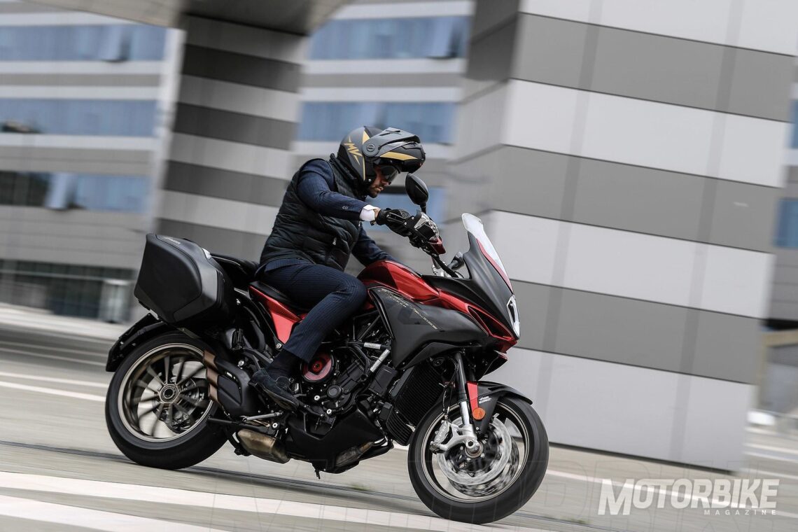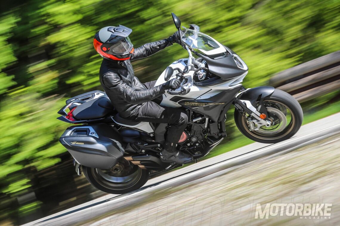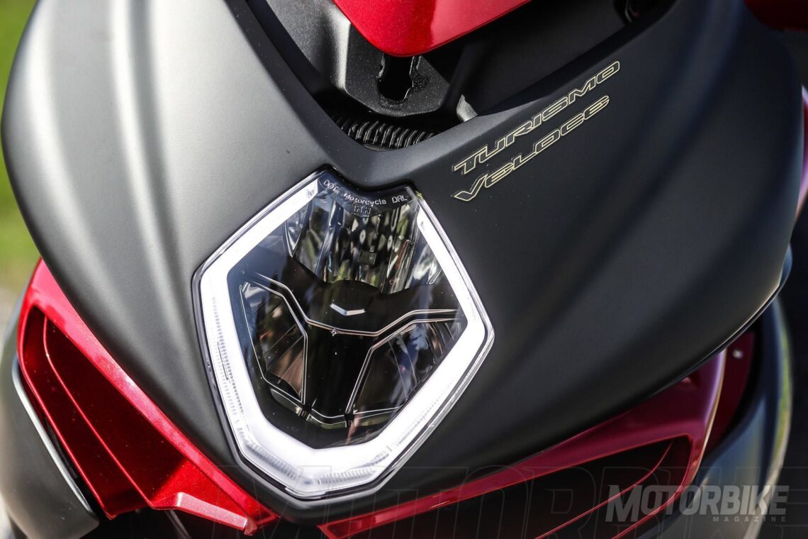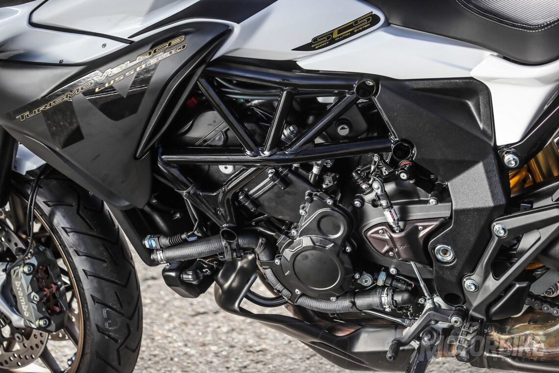 Por lo demás, la MV Agusta Turismo Veloce 800 SCS sigue siendo una moto cómoda y con un marcado carácter deportivo que se beneficia de otras mejoras añadidas en la gama Euro 4, reduciendo emisiones y ruido, aunque manteniendo su potencia de 110 cv y par de 80 Nm intactas. Su motor ha recibido algunas modificaciones, pero sigue sorprendiendo por su árbol de levas contra-rotante, tecnología derivada de MotoGP y que ayuda a reducir inercias. La transmisión es nueva, mejorando los cambios de marcha, más rápidos y precisos. Se le han acoplado cubiertas en el basculante para reducir el ruido.