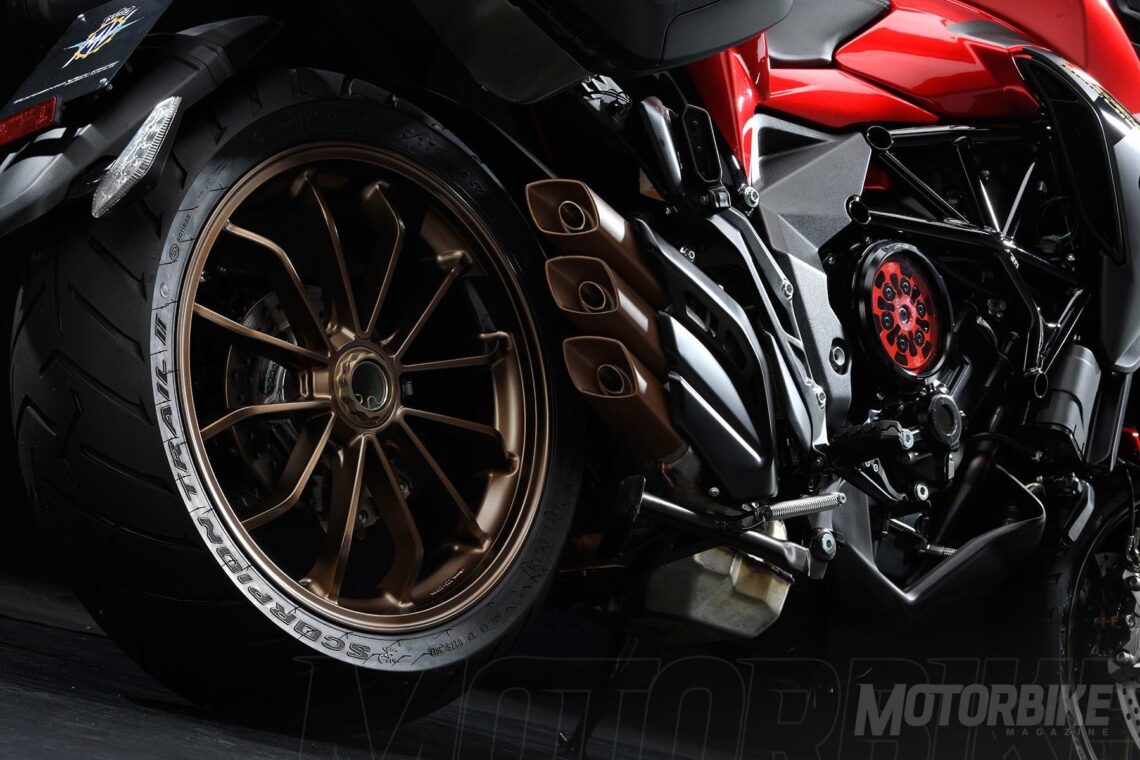 Type Progressive Sachs, semi-active single shock absorber with hydraulic spring preload adjustment MVCSC (MV Agusta Chassis Stability Control)