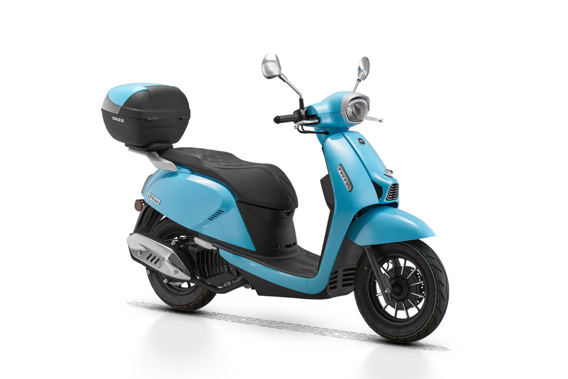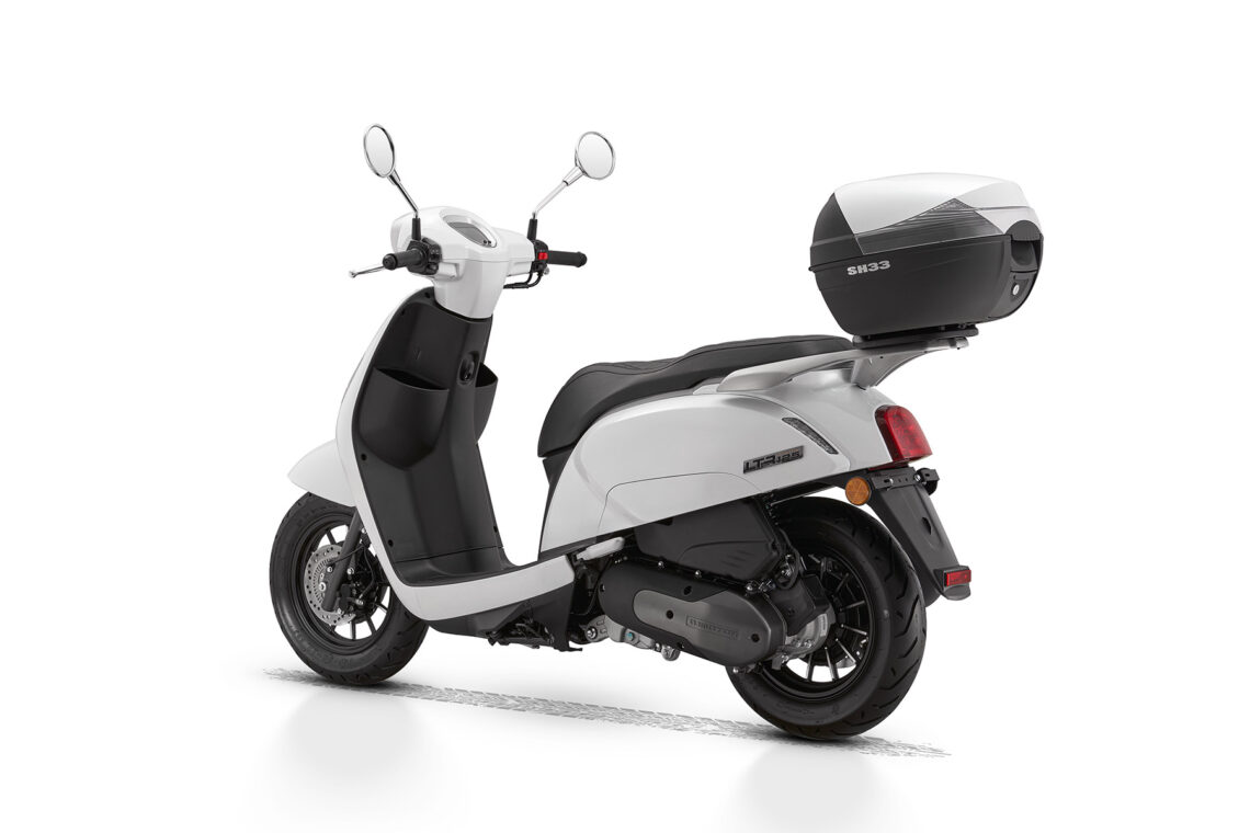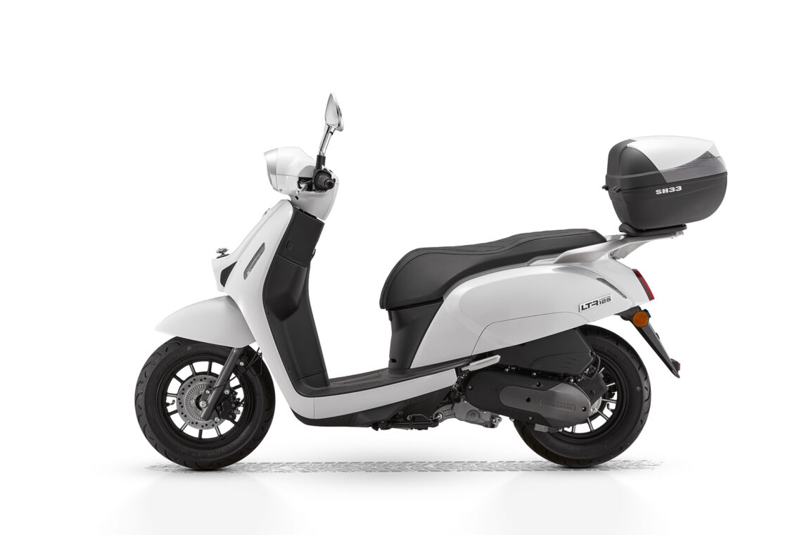 Que su diseño clásico no te confunda, el LTR 125 incorpora tecnología avanzada y un equipamiento completo. Incluye sistema Start & Stop, pantalla LCD e iluminación Full LED, además de un baúl trasero de serie y espacio para un casco jet bajo el asiento. Está disponible en tres colores: negro, azul y blanco.