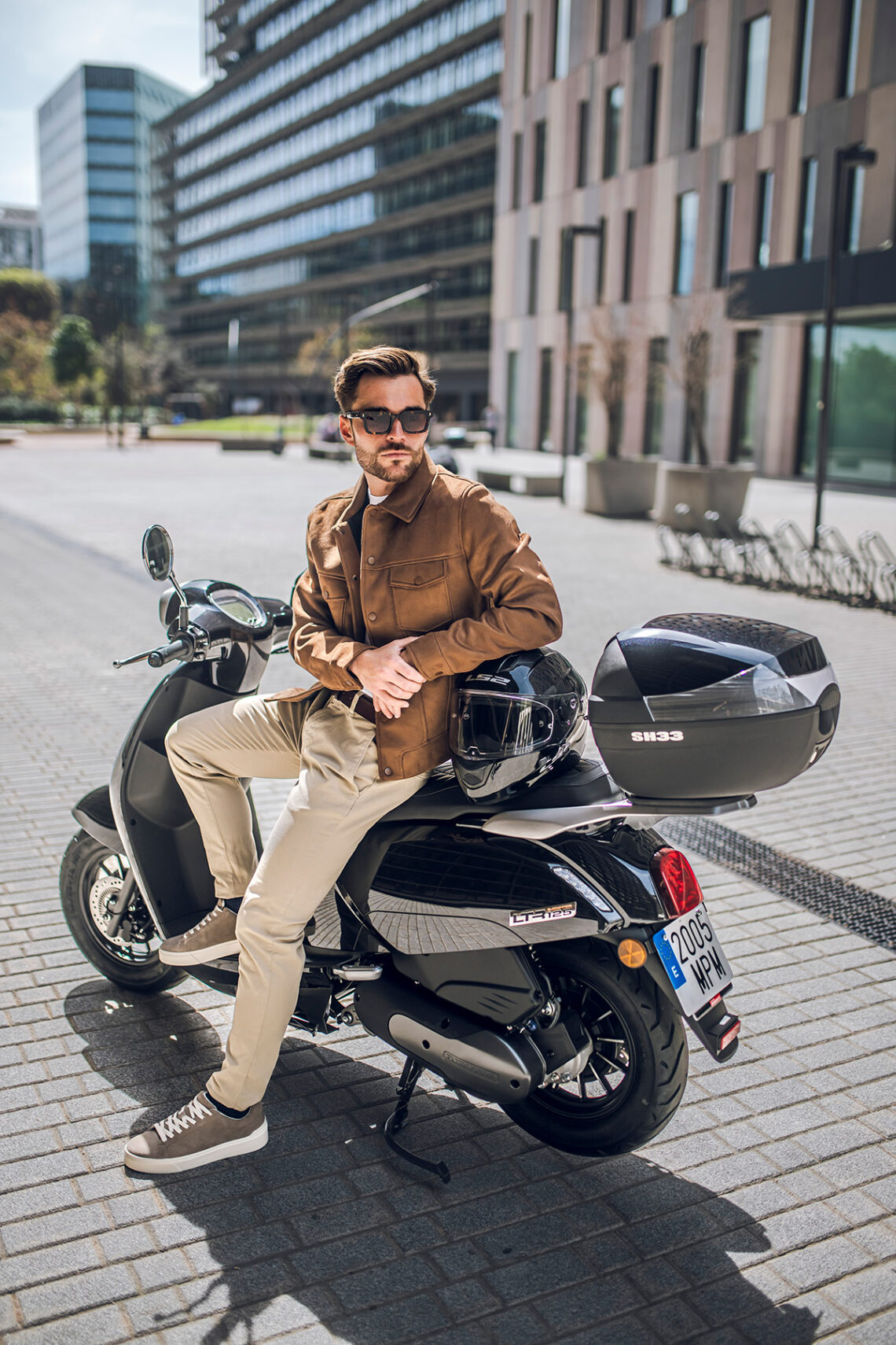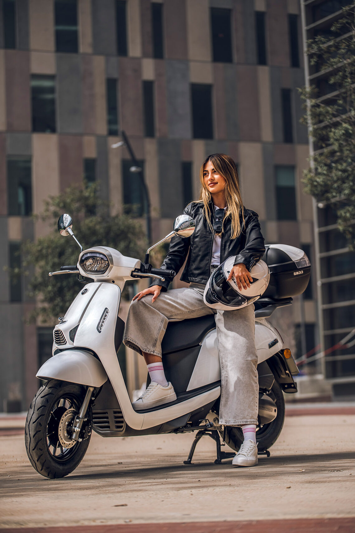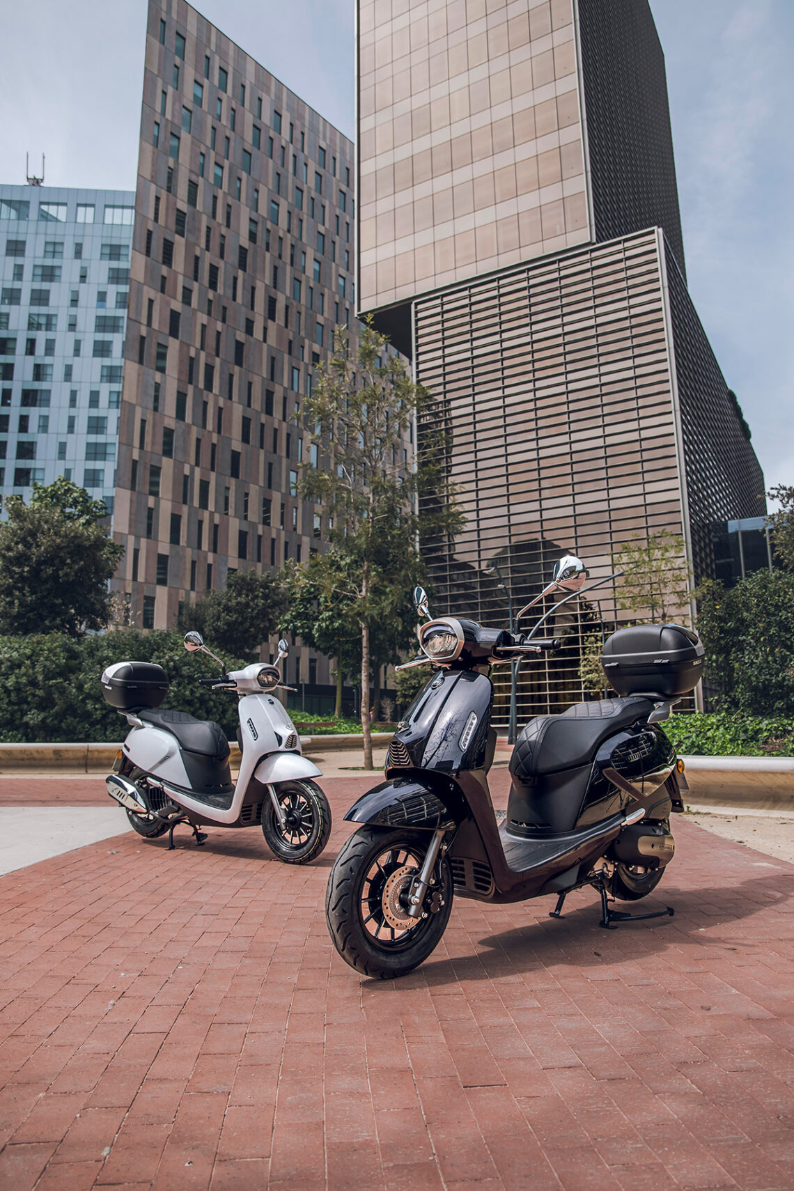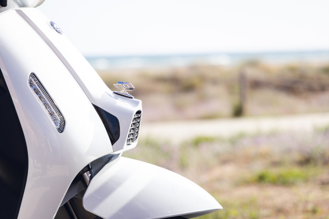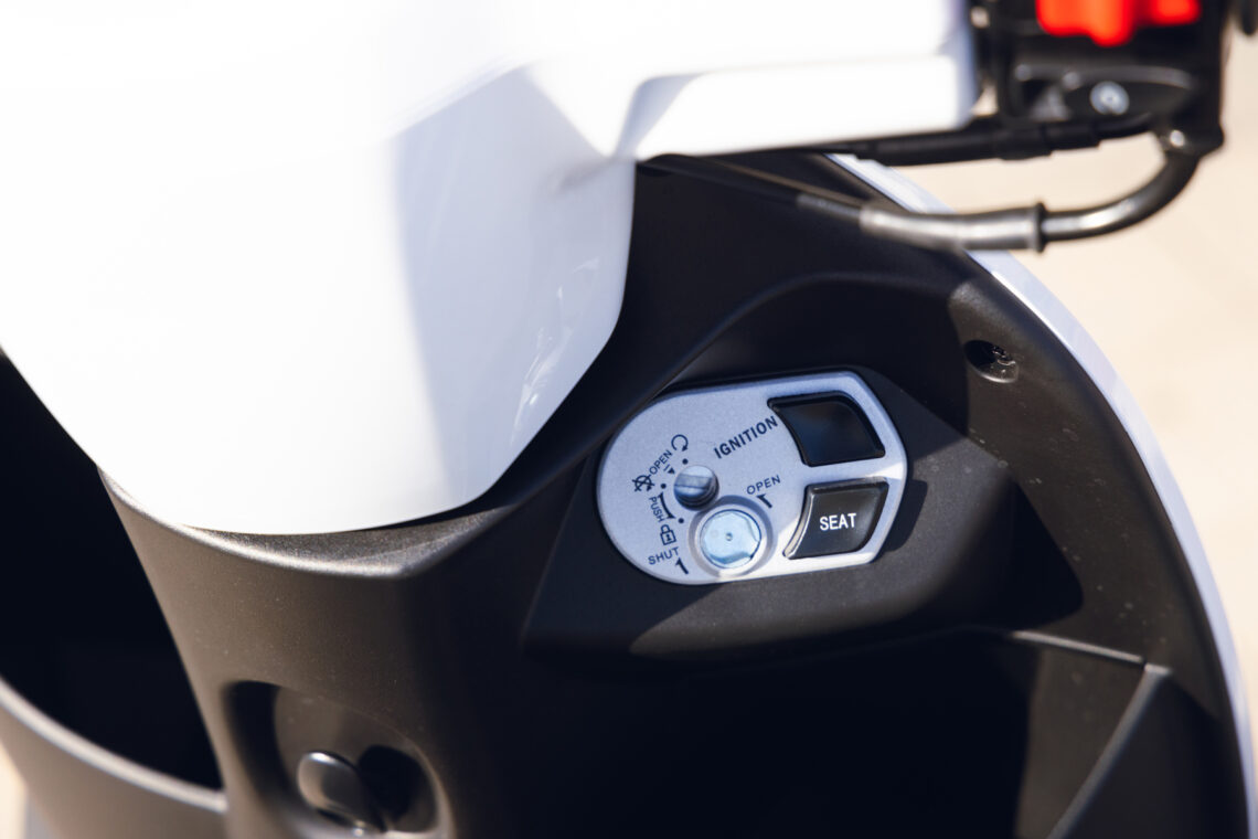 Destaca por su agilidad, con solo 71 cm de anchura y ruedas de 100/90-12” o 90/90-12” delante y 110/90-12” detrás. Con un peso de 118 kg, es perfecto para la conducción urbana. Su suspensión, con horquilla telescópica delantera y monoamortiguador hidráulico trasero, junto con frenos de disco de 220 mm y 190 mm con ABS, aseguran confort y seguridad.