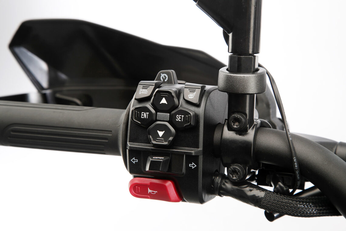 El ABS de Bosch es desconectable a lo que hay que añadir el control de tracción también desconectable desde la piña izquierda. Hay que decir que este modelo ya viene con acelerador electrónico, lo que le aporta un control de todos los sistemas mucho más afinado. Viene con cambio rápido Quickshifter (tanto para subir como para bajar marcha), control de crucero (entre 65 km/h y 130 km/h, disponible en relaciones de 4ª a 6ª marcha) y embrague antirrebote.