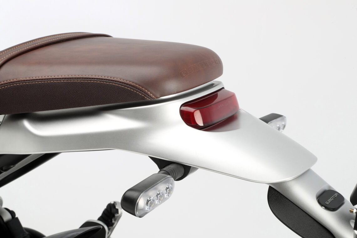 Respecto a su estética, destaca por sus líneas elegantes. Éstas se aprecian desde su frontal, con un pequeño carenado que simplemente rodea el faro, pero le da un toque retro. También se aprecia en su depósito, bicolor, y, por supuesto, en su asiento marrón. En sus mandos, la SRV 550 tiene una pantalla LCD multifunción, mientras que su iluminación es Full LED. La QJ SRV 550 está disponible en un color: negro/plateado.