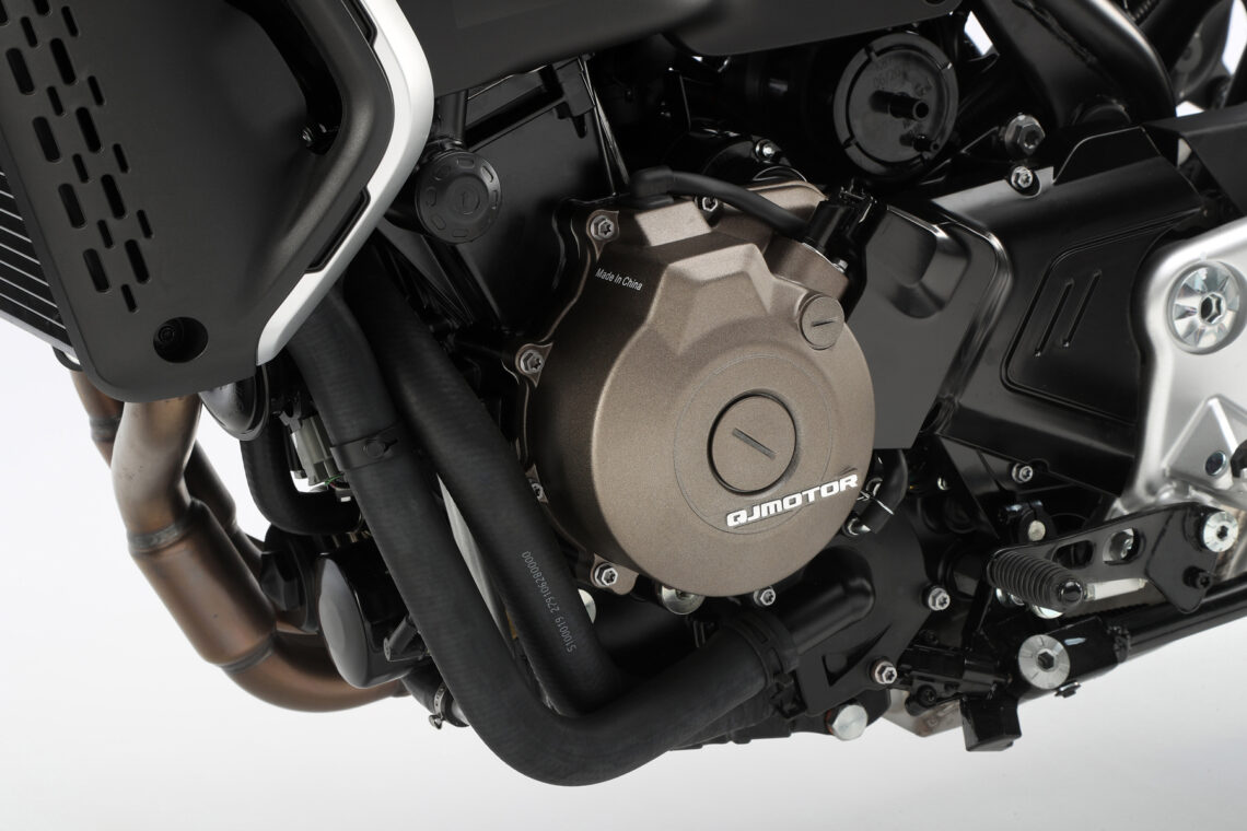 Su motor es el QJ269MR-D, el mismo bicilíndrico que lleva su hermana trail, la QJ SRT 550. Un propulsor de 554 cc que da una potencia de 47,5 CV a 7.500 rpm y un par máximo de 51,0 Nm a 5.500 rpm. Unas cifras que la convierten en una moto apta para el carnet A2.