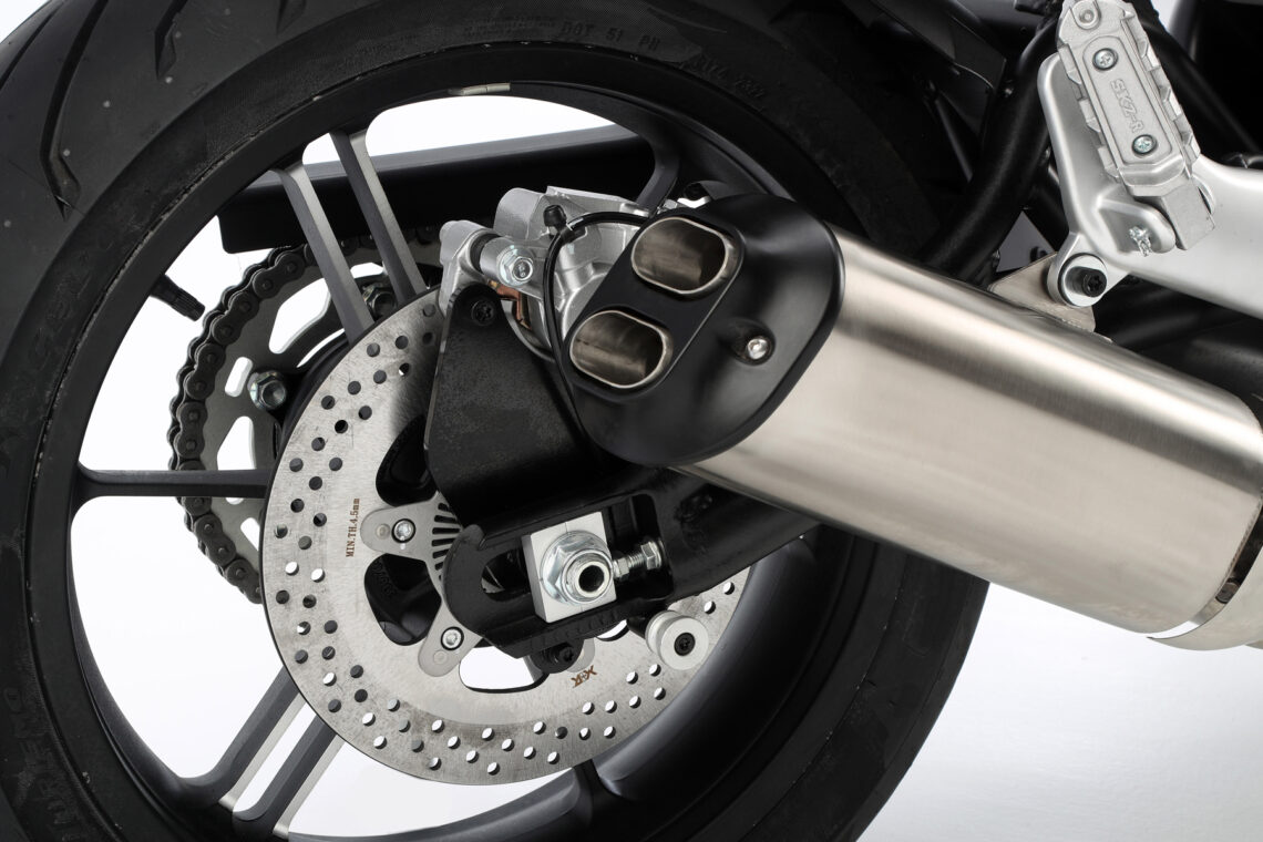 En cuanto a sus dimensiones, su asiento se encuentra a 765 mm del suelo, por lo que es un modelo apto para usuarios de baja estatura. Más si tenemos en cuenta su peso, que no supera los 200 kilos en vacío (193 kg). Además, su distancia entre ejes es de 1.440 mm, lo que la convierte en una naked de media cilindrada bastante manejable.