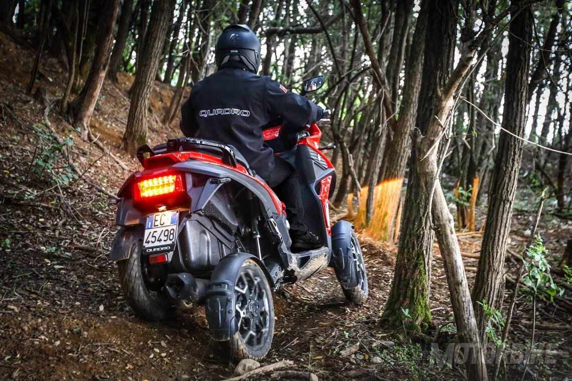 Además, el Quadro4 se ha diseñado para hacer frente a la conducción por terrenos adversos. Tiene espacio bajo el asiento para un casco integral y otros dos compartimentos en la parte frontal y dos tomas de 12V.