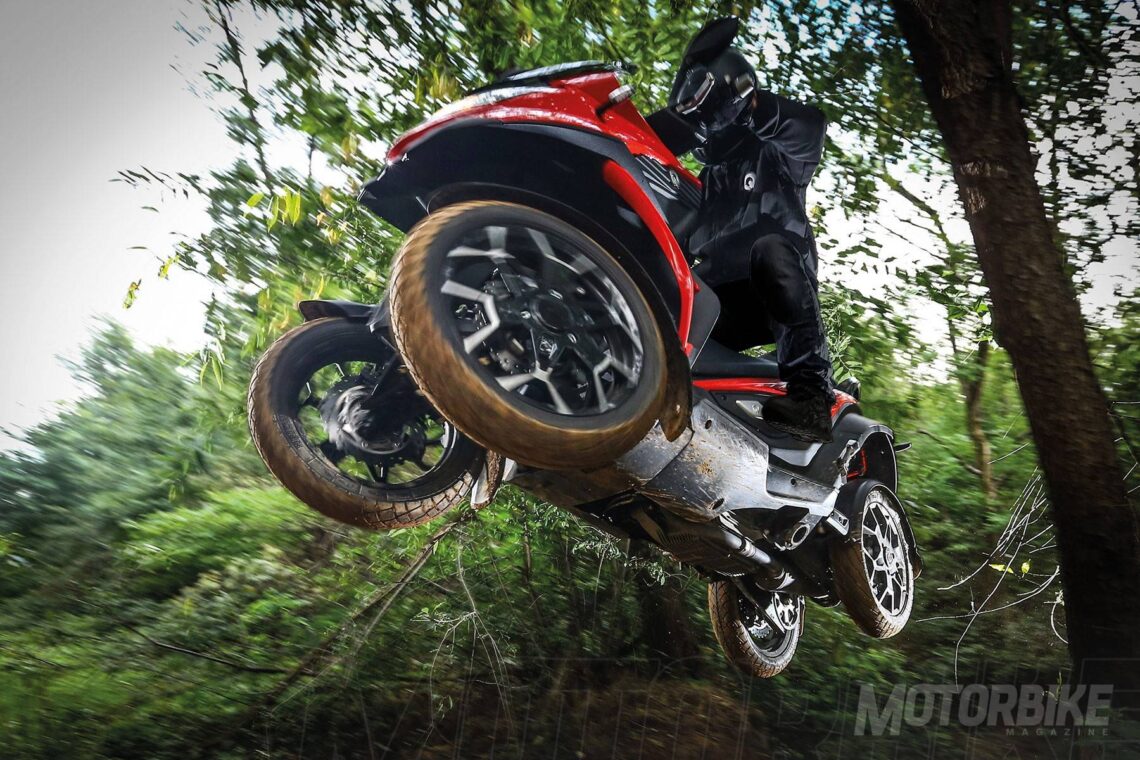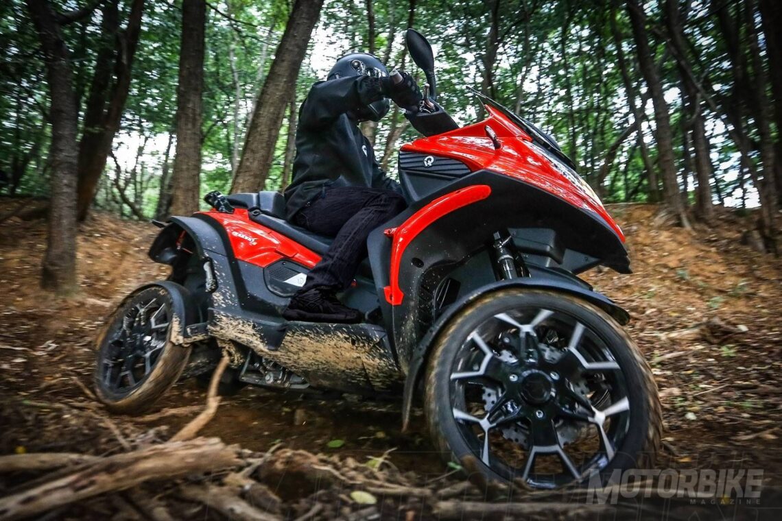 Con ello se consigue aún más generar confianza en el usuario en términos de seguridad y aumentar el confort a bordo en cualquier tipo de carretera y condiciones climatológicas y además para cualquier tipo de usuario. Incluso la marca suiza nos muestra imágenes del cuadriciclo en circuito o en off-road.