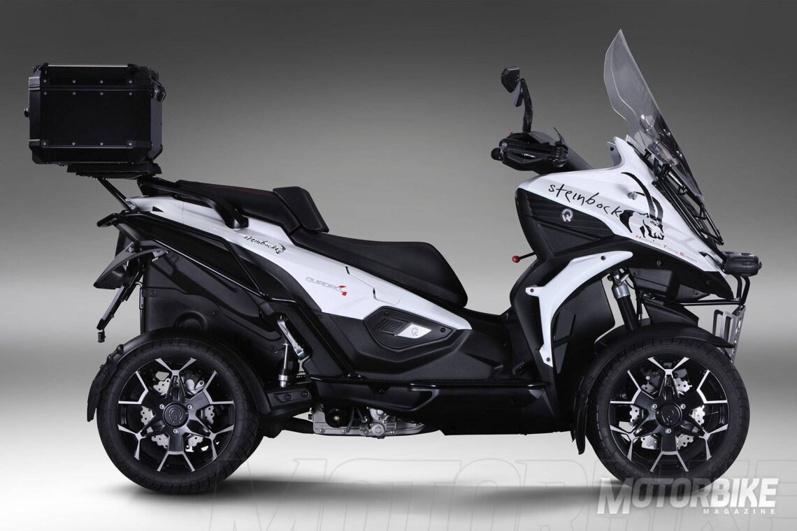 Basado en el Quadro4, llega en 2017 el Quadro4 Steinbock, un scooter de cuatro ruedas que se puede conducir con el carnet de coche preparado no sólo para los desplazamientos del día a día sino para afrontar algunos retos inesperados y superar todo tipo de obstáculos.