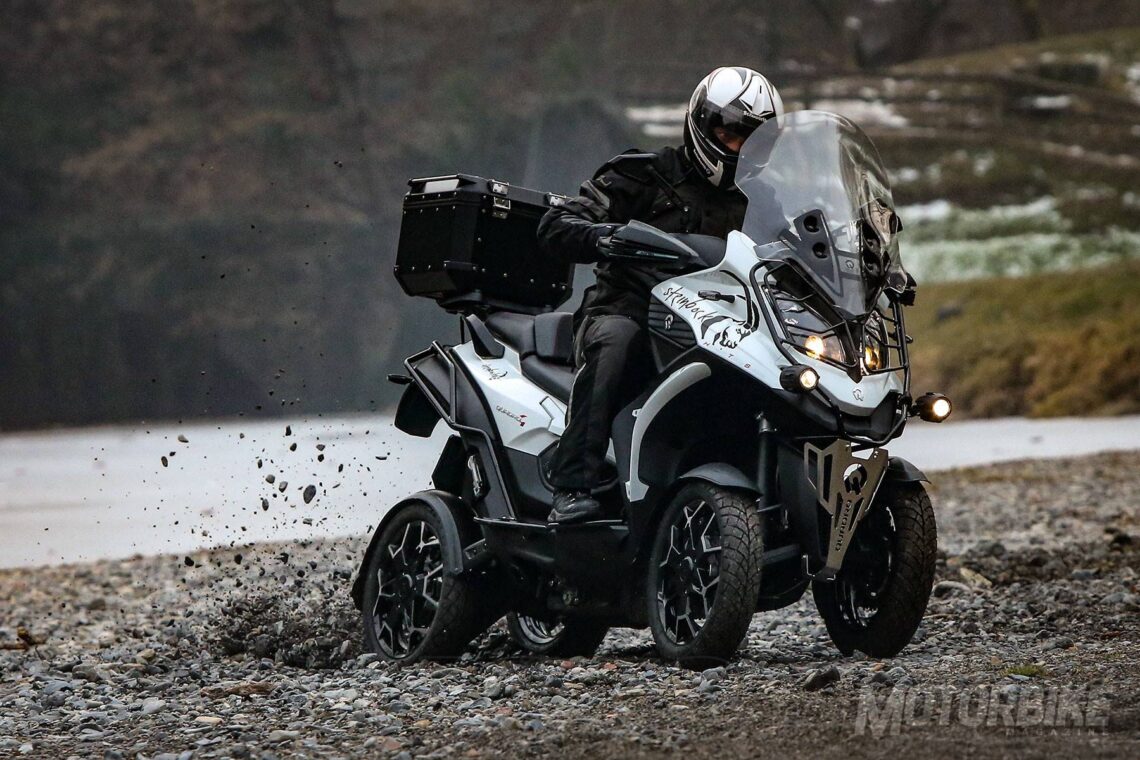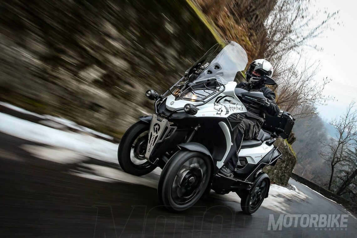 Gracias al sistema de suspensión hidroneumática HTS (Hidraulic Tilting System), esta moto-SUV puede afrontar cualquier tipo de terreno apoyando cada una de las cuatro ruedas de manera firme ya que el sistema compensa las diferencias en superficies desiguales. Las ruedas motrices son las traseras y asegura la tracción en cualquier superficie.