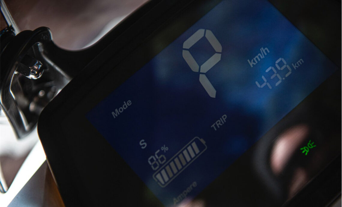 - Cuadro instrumentos: Pantalla digital LCD, monocromático velocímetro, cuenta KM total y parcial. 3 modos conducción ECO, DYNAMIC y SPORT. Indicadores: carga batería restante (gráfica y porcentaje).