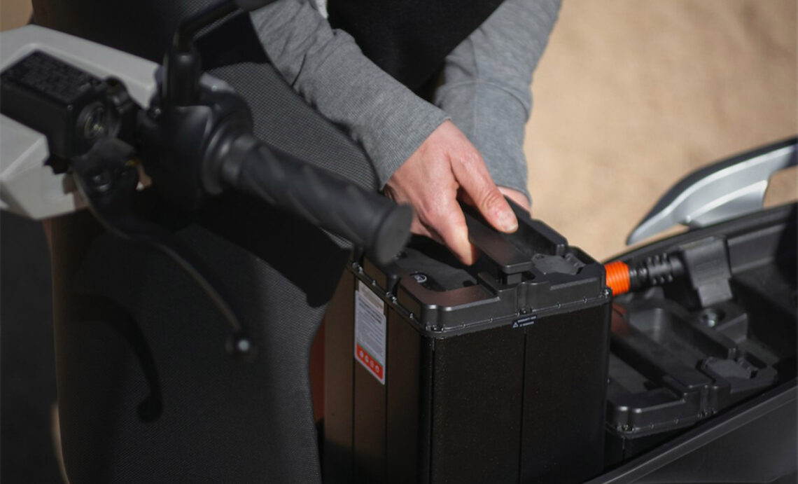 Las baterías están formadas de iones de litio Greenway, con una capacidad de 2100 Wh en el de 3 kW y de 1560 en el ciclomotor, y en ambos casos se pueden reemplazar rápidamente. El peso de cada batería es de 12 kilos, son fácilmente extraíbles del compartimento del asiento para que puedan ser recargadas en una toma doméstica, y también tienen la posibilidad de recargarse instaladas en el vehículo utilizando su toma de carga.