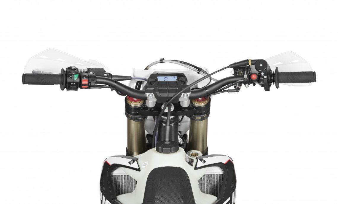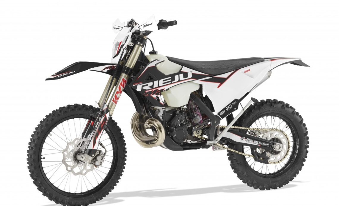 La Rieju MR 300 Racing ya es bien conocida entre los endureros después de su llegada el año pasado. Su característico motor 2T destaca por una entrega de potencia muy lineal y con dos mapas de motor, seco y mojado, para según el estado del terreno. Dispone de un chasis de acero y basculante de aluminio que le aporta una gran agilidad. Las suspensiones son Kayaba, con una horquilla invertida de barras de 48 mm y un monoamortiguador trasero regulable. Entre los componentes encontramos marcas de gran calidad como las suspensiones Kayaba, los frenos Nissin, o el embrague Magura.
