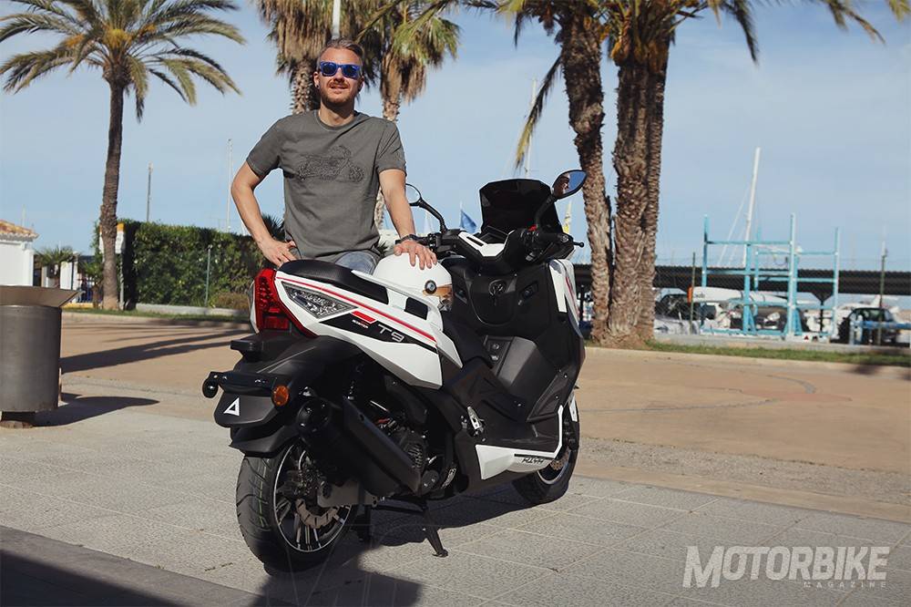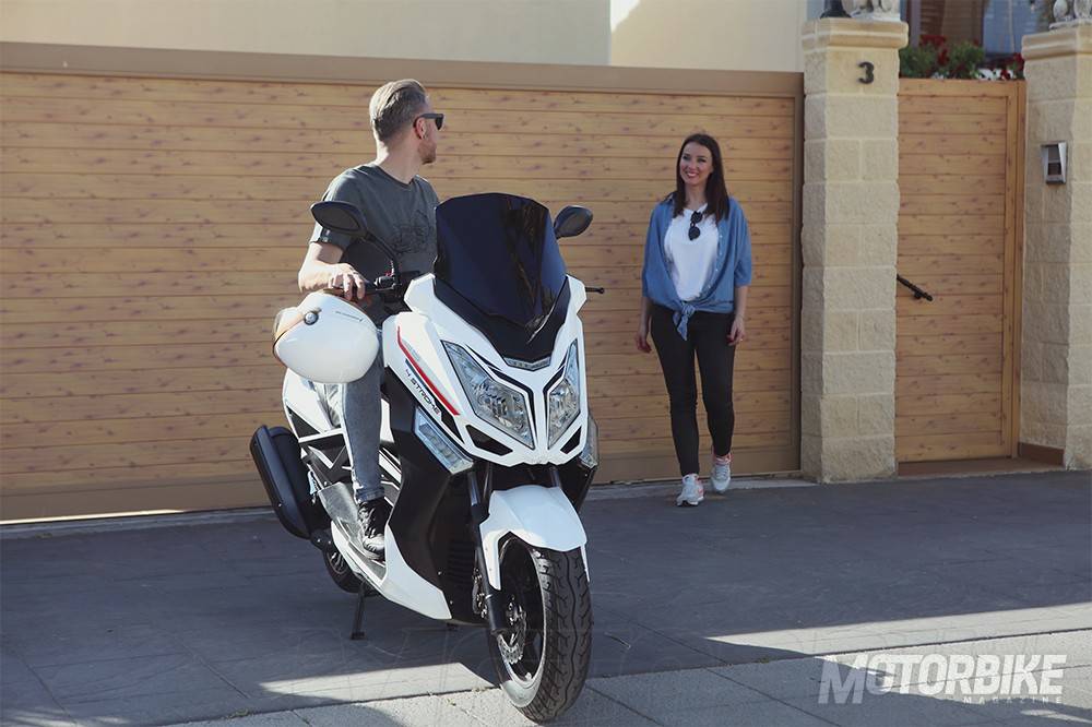 EL Riya T9 125 tiene grandes dimensiones propias de un maxi-scooter de gran cilindrada, pero disponibles para un scooter que se puede conducir con el carnet de coche.