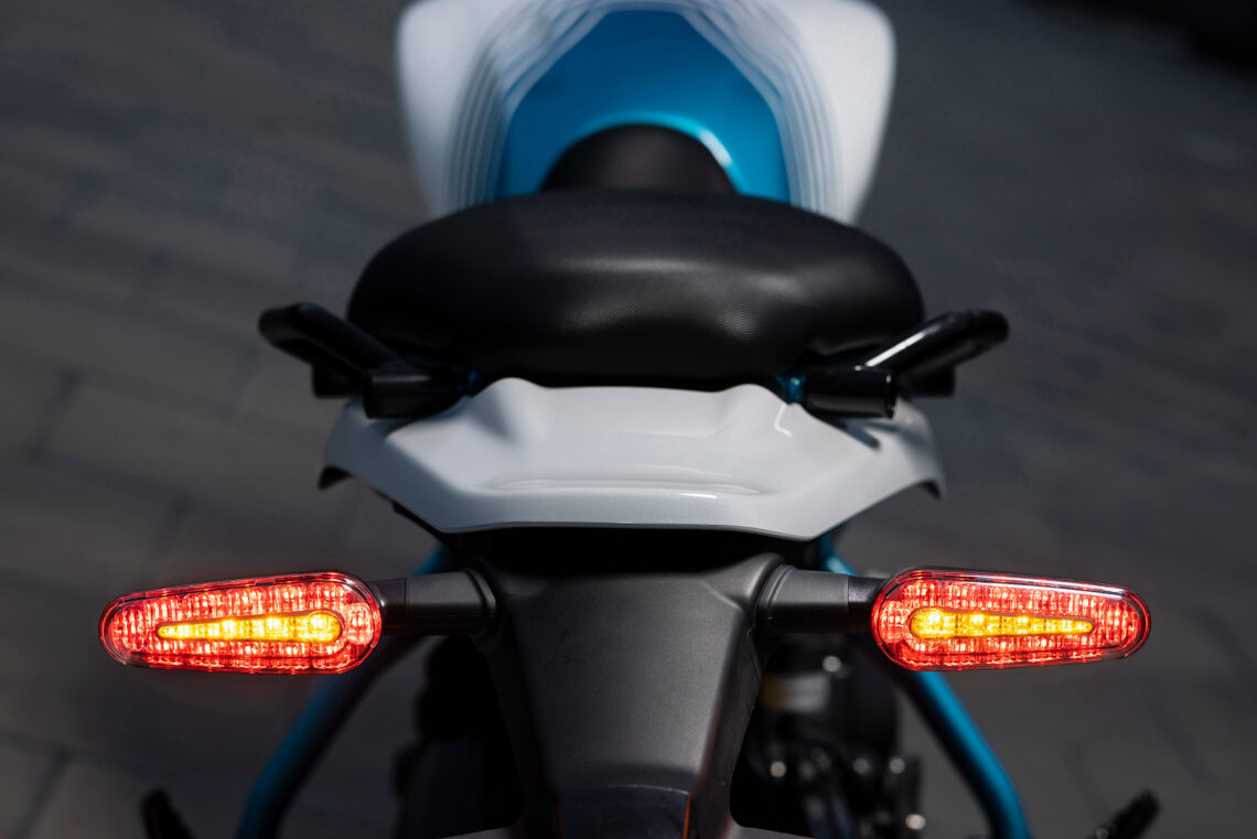 Su equipamiento se completa con el empleo de iluminación full-LED, óptica trasera integrada con los intermitentes, toma de corriente USB-C, display TFT de 4" con conectividad y navegación Google, caballete central, depósito de gasolina de 11 l.