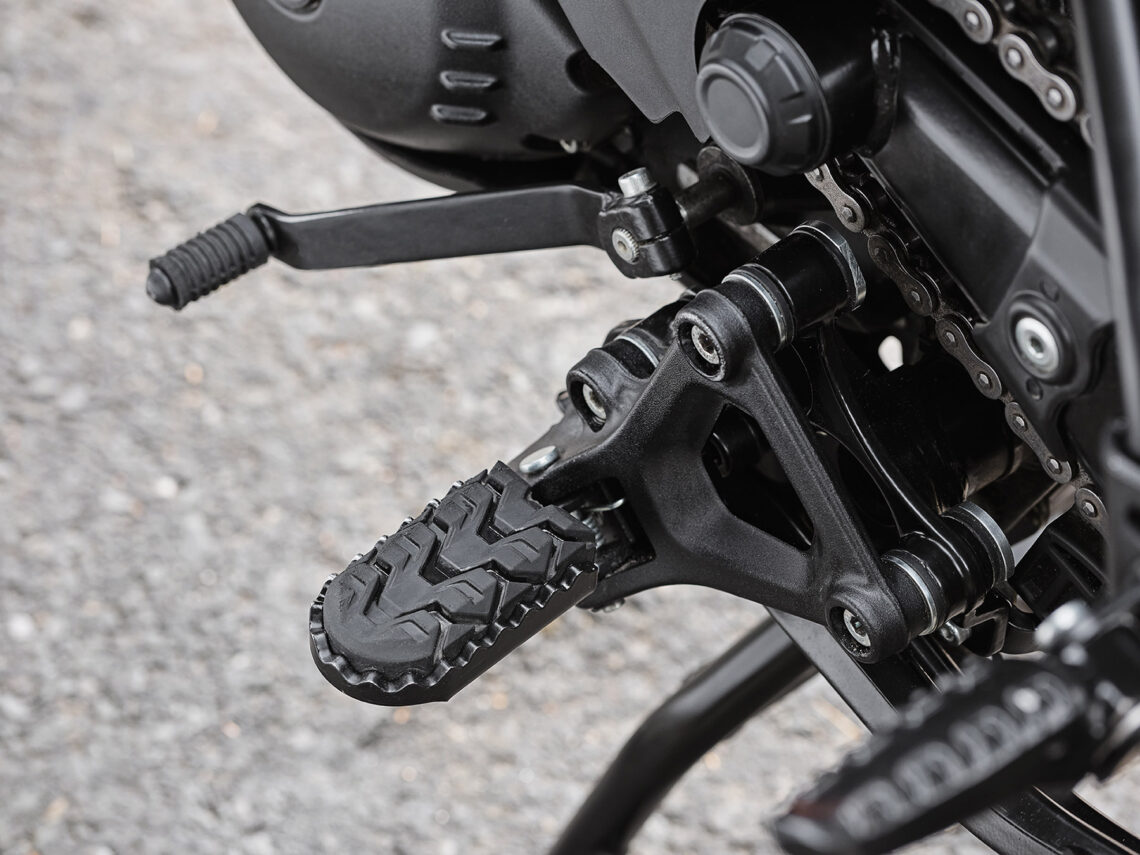 Todo esto, junto a su ancho manillar, a sus estriberas endureras y a unas suspensiones con 200 mm de recorrido tanto delante como detrás nos dejan una moto perfectamente preparada para la aventura. La horquilla, por cierto, es una Showa invertida con barras de 43 mm. Mientras que de los frenos, por su lado, se encarga un disco delantero de 320 mm con pinza de doble pistón y otro trasero con pinza de pistón simple.