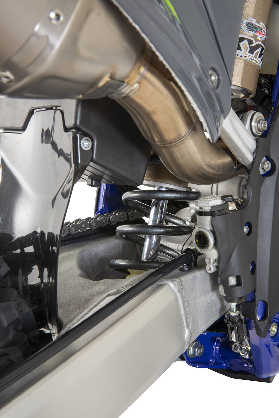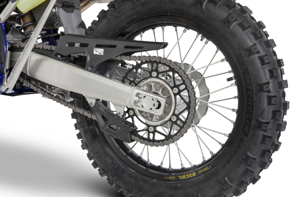 - Nuevo basculante. 200 gr más ligero, mayor confort, y tracción, nuevo sistema de rodamientos y sellado del cojinete, nueva escala para facilitar la tensión de la cadena (2 posiciones equivalente a un diente).