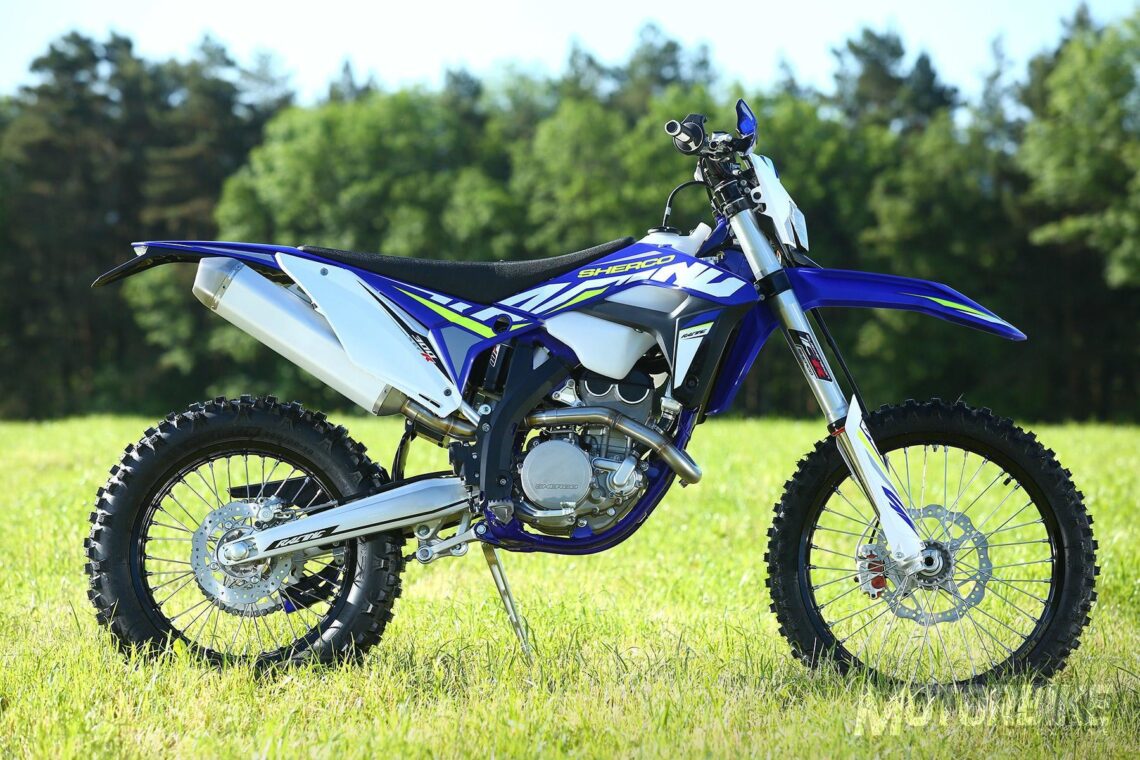 La Sherco 250 SEF-R es la opción de enduro 4 tiempos con la que te puedes adentrar en el enduro. Se basa en la moto del año pasado, pero han añadido mejoras. La 'dos y medio' ha recibido un nuevo pistón de diámetro más grande (78 mm), que permite subir más revoluciones y conseguir más potencia. El cigüeñal se ha adaptado y se ha mejorado la culata con nuevos conductos de admisión y escape. El perfil del árbol de levas es específico de la 250, ganando fuerza en la admisión para conseguir mayor par en bajas y mayor potencia en altas, mientras que el escape también se ha retocado para ganar en esos mismos puntos. Por otro lado, la campana del embrague es nueva consiguiendo reducir la inercia y aligerando su peso en 90 gr.