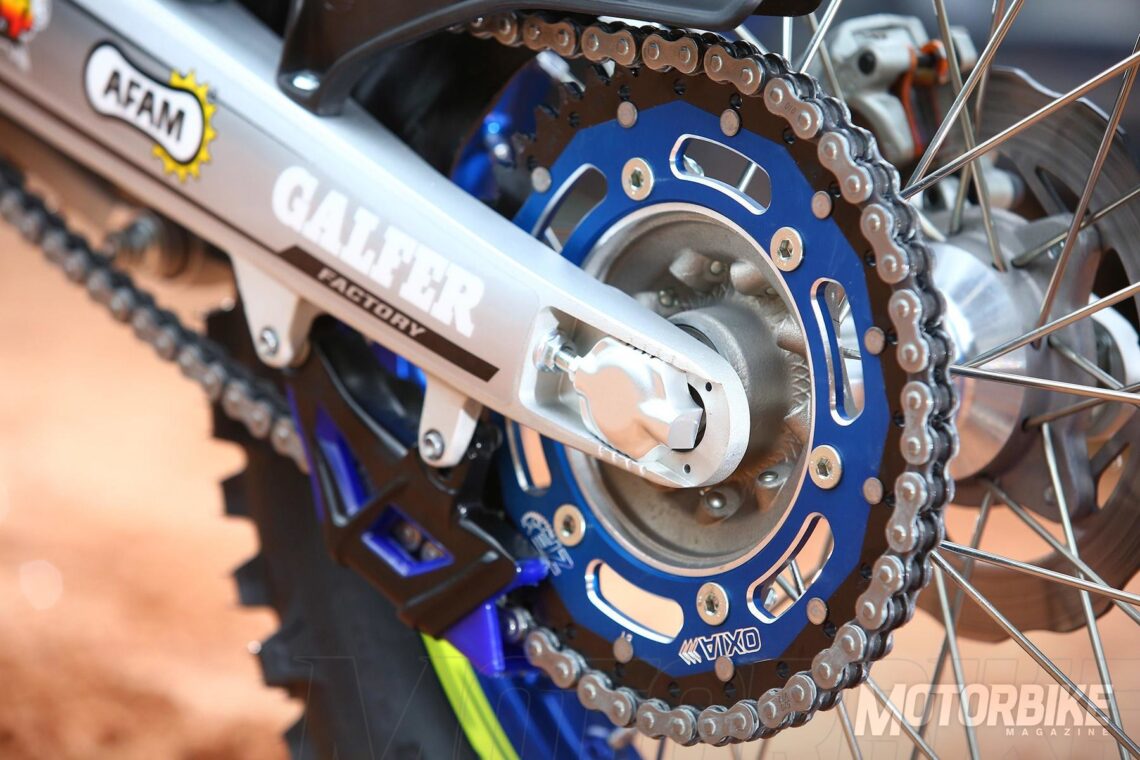 | Rueda trasera | Llanta Excel 2.15 x 18’’ Anodizada azule y neumático Michelin Enduro Competición |