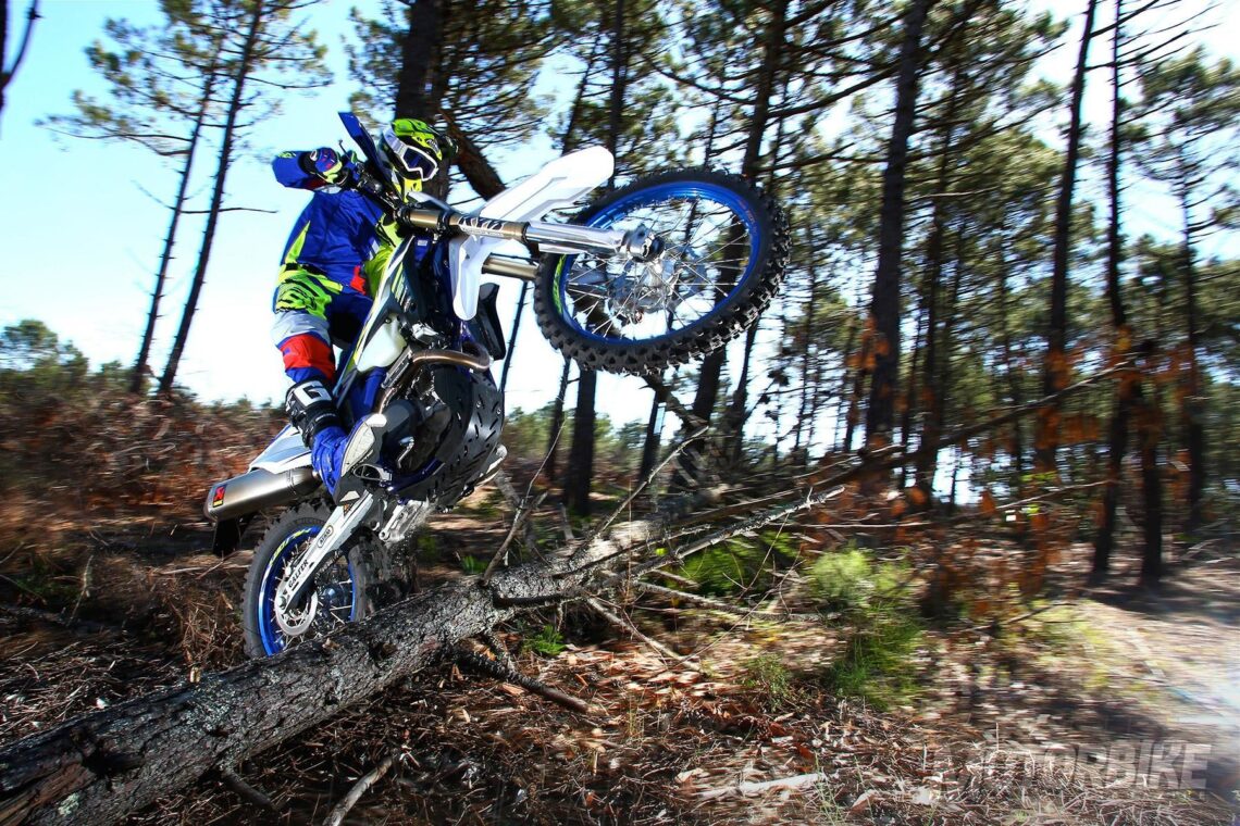 La Sherco 450 SEF Factory, basada en la Sherco 450 SEF-R, es una de las motos estrella del segmento de enduro 'cuatro y medio' gracias al plus de su equipamiento: