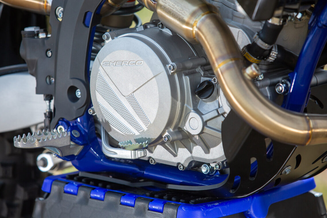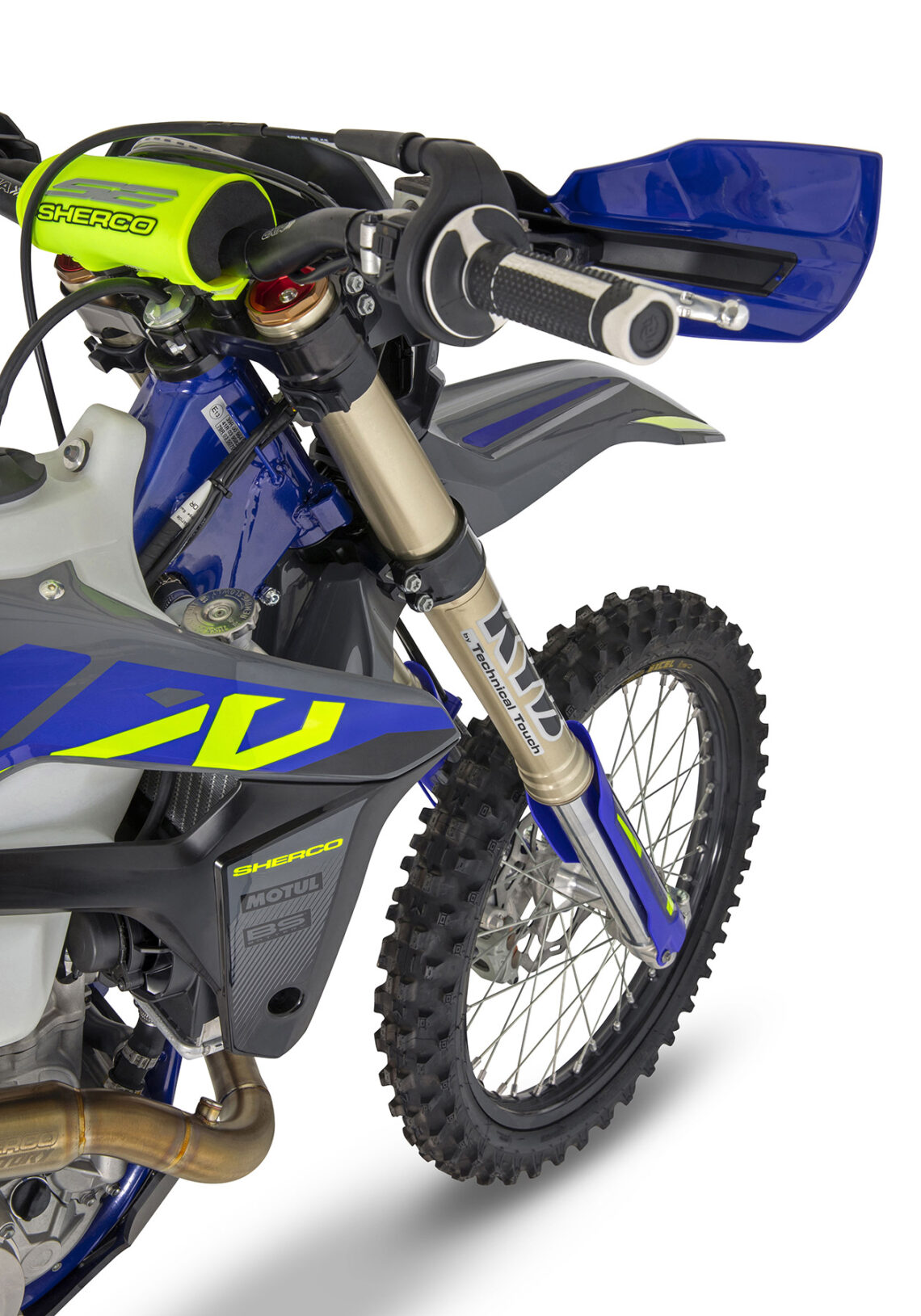 La Sherco 450 SEF Factory 2024 es uno de los modelos estrella de la marca en el que se plasma el máximo nivel y rendimiento de enduro.