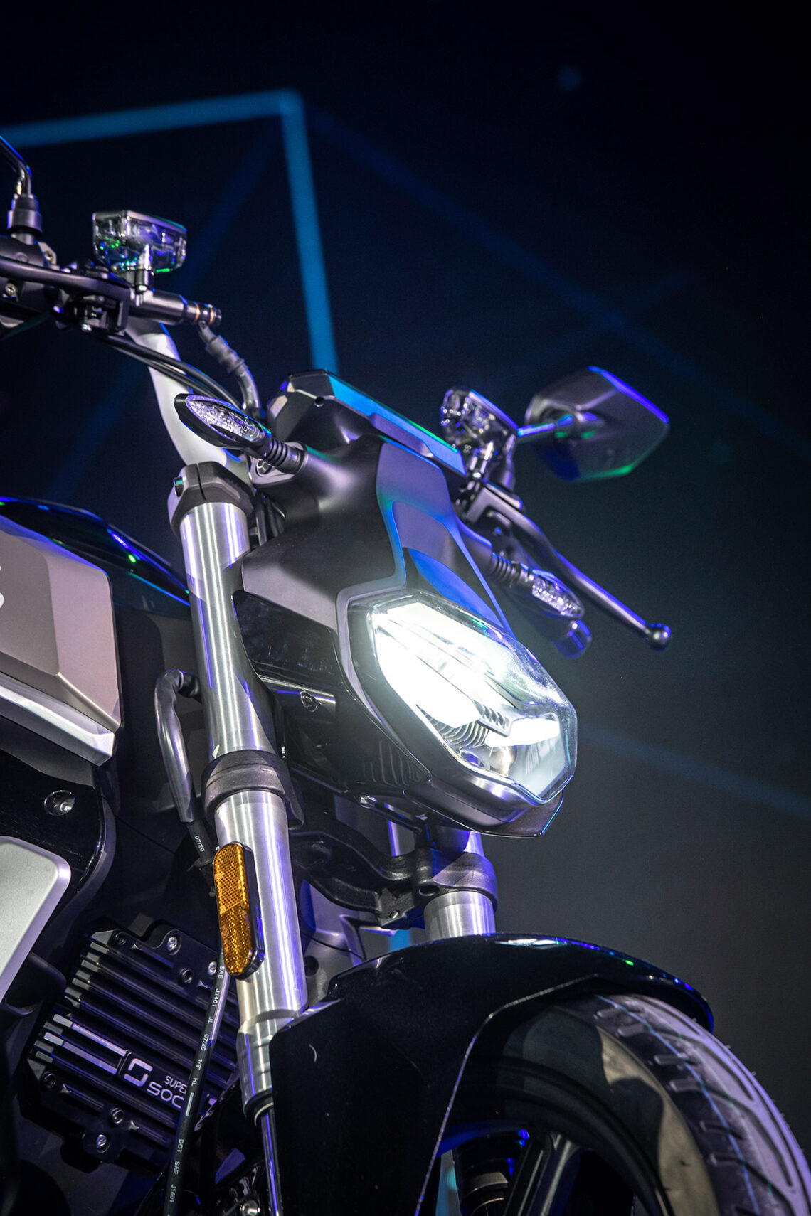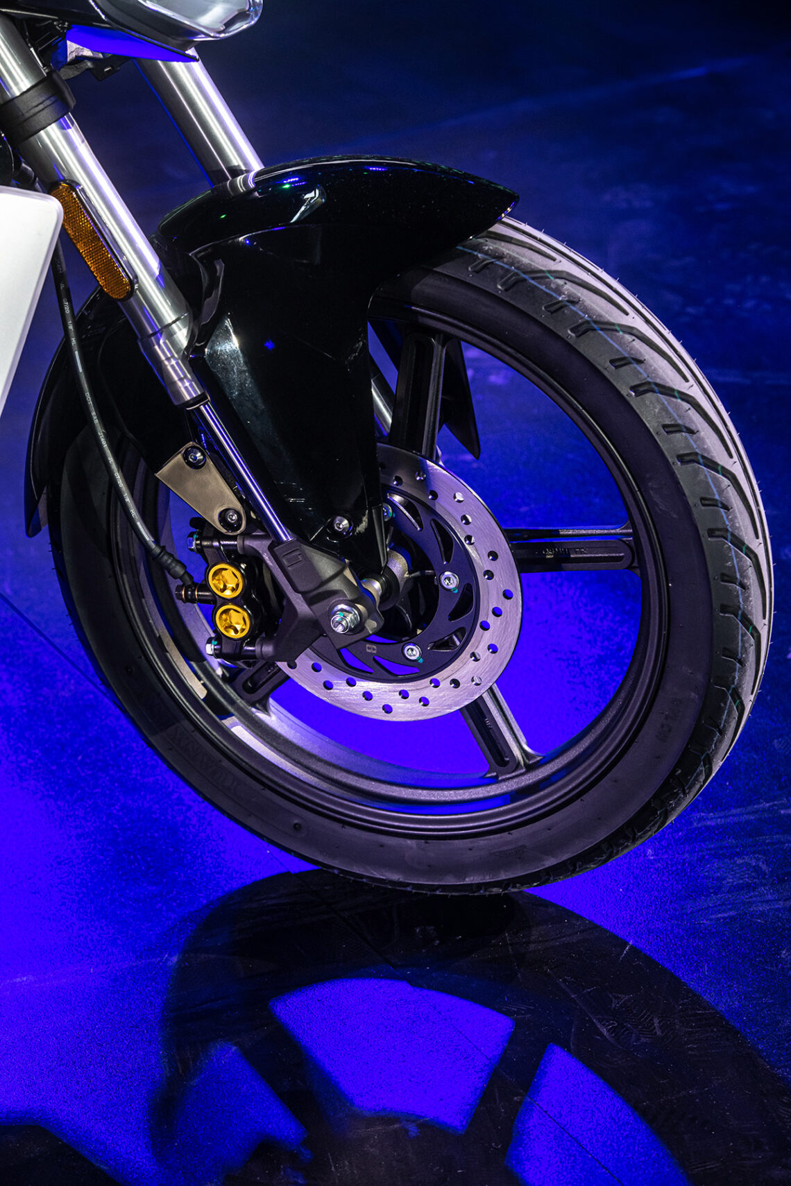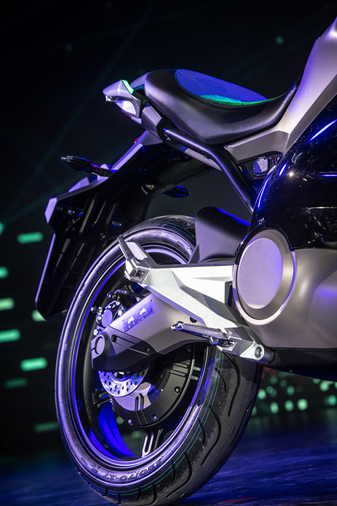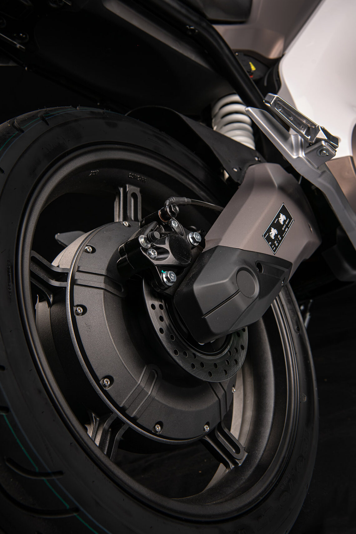 Gracias a la posición del motor, el centro de gravedad de la moto se posiciona muy bajo, lo que hace el recorrido más placentero y seguro. No se nos puede olvidar que dispone de frenada combinada CBS en ambos ejes (frenos de disco) mientras que se ha optado por neumáticos de 17". La gestión de la batería se coordina con la unidad del motor FOC v3.0 con unas novedades en su comportamiento que consigue una mejora en la eficiencia de un 16%.