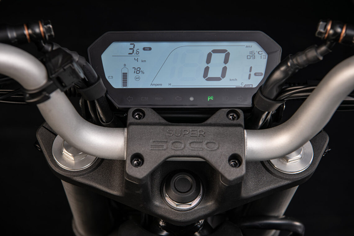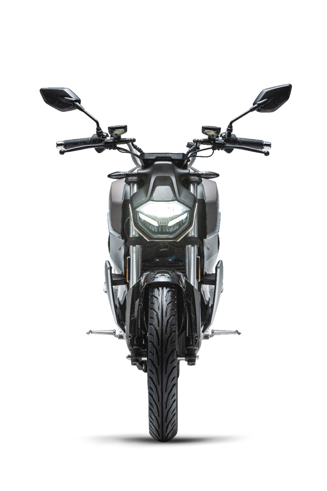 El display con tecnología TN muestra toda la información que necesitas (estado de la batería doble, autonomía, odómetro, velocidad, mapa, reloj, temperatura del aire) de manera clara. La estabilidad del conjunto se consigue también gracias a un manillar ancho que ofrece tanto una sensación de control como de deportividad y comodidad de marcha. Este confort también se ha tenido en cuenta con el asiento, con un mullido de triple densidad, tanto para el conductor como el pasajero.