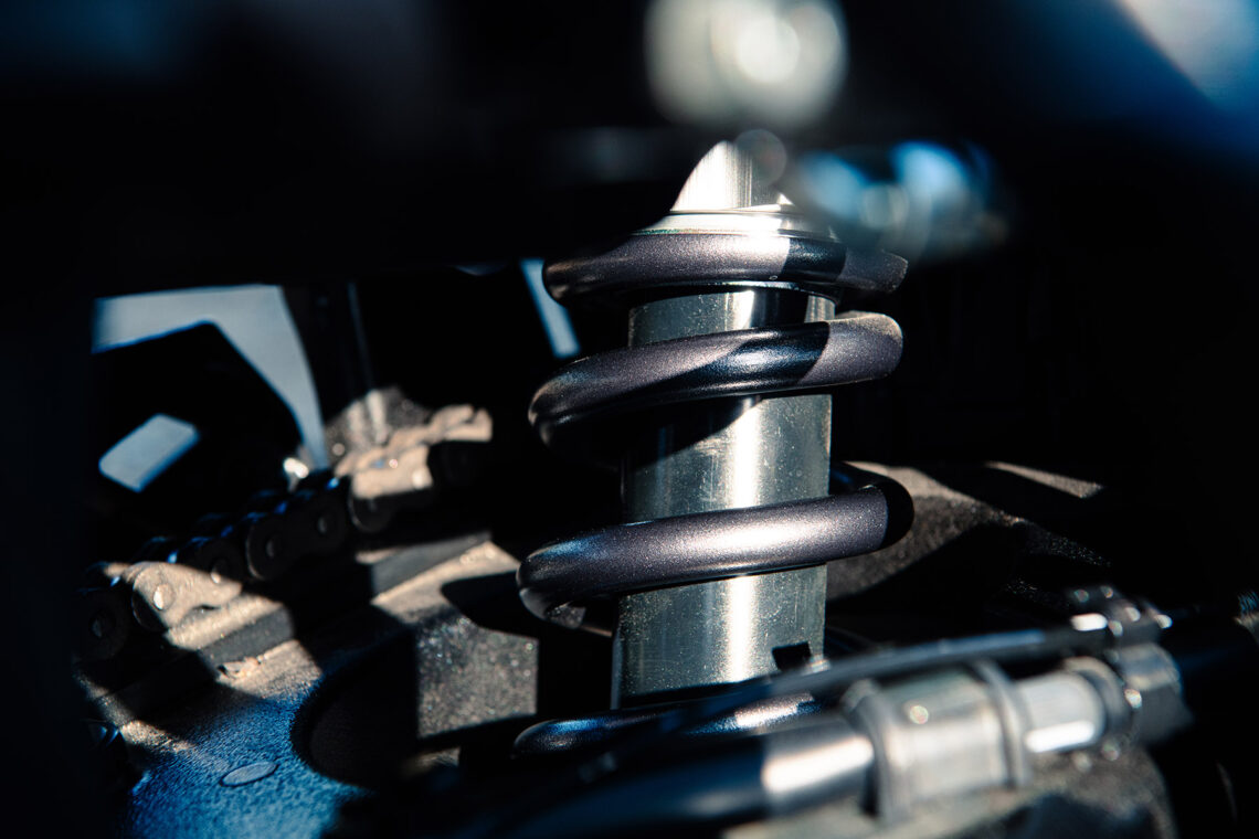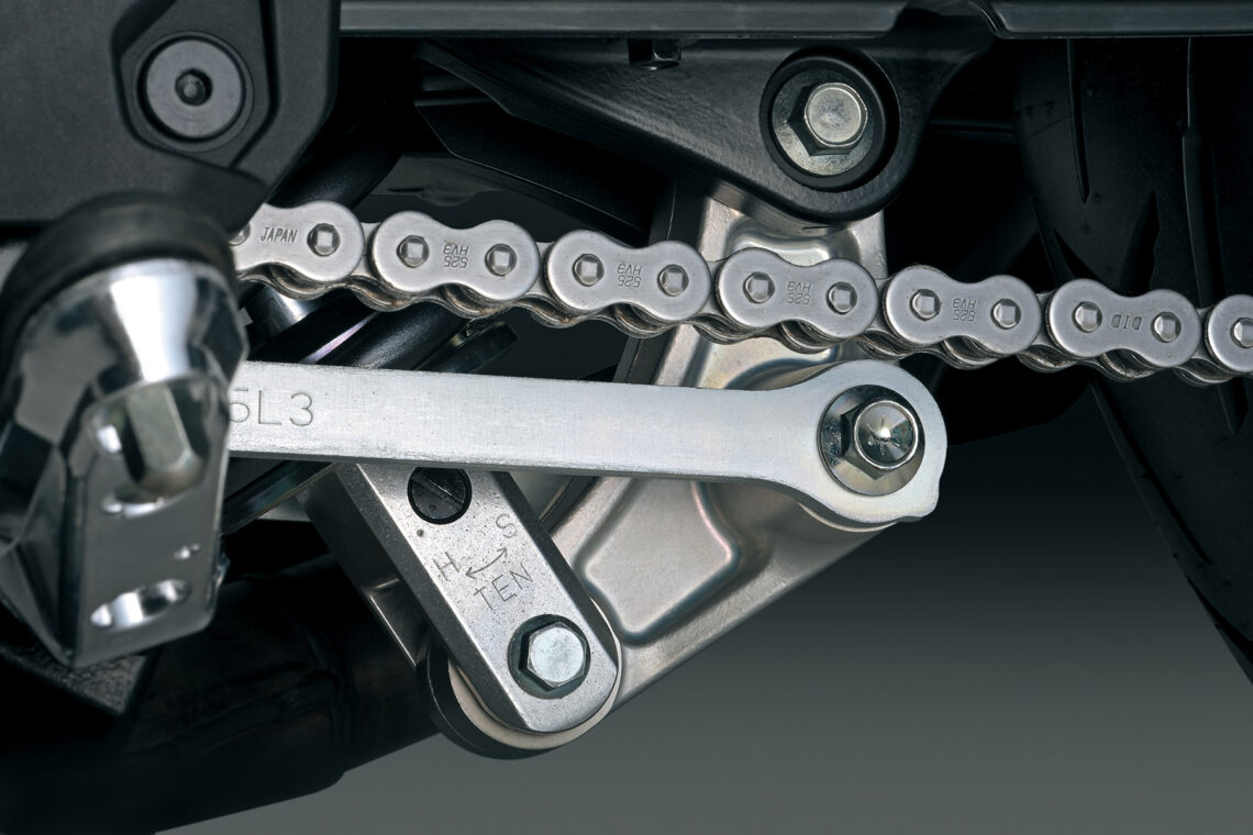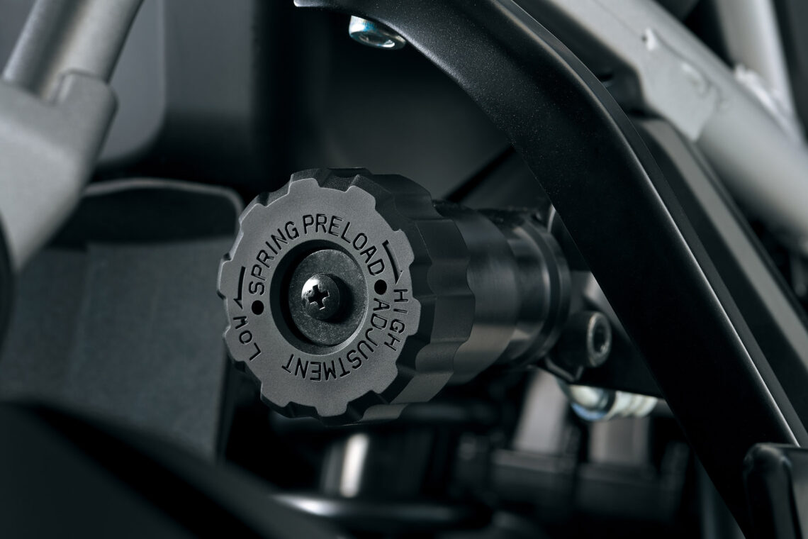 En los frenos también hay especificidades, ya que en esta versión se han decantado por un doble disco delantero de 310 mm, pero con pinzas de cuatro pistones y anclaje radial más capaces para el rendimiento sobre asfalto y un disco trasero de 260 mm con pinza de un pistón. En cuanto a las suspensiones Showa SFF-BP de funciones separadas, la Suzuki V-Strom 800 Tech no ofrece tantas opciones de personalización, ya que la horquilla se puede ajustar sólo en precarga mientras que el amortiguador trasero es ajustable en precarga y en rebote. Esta versión viene de serie con los neumáticos Dunlop D614 de corte viajero y asfáltico.