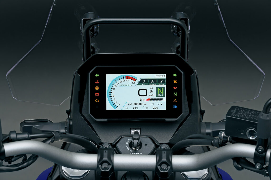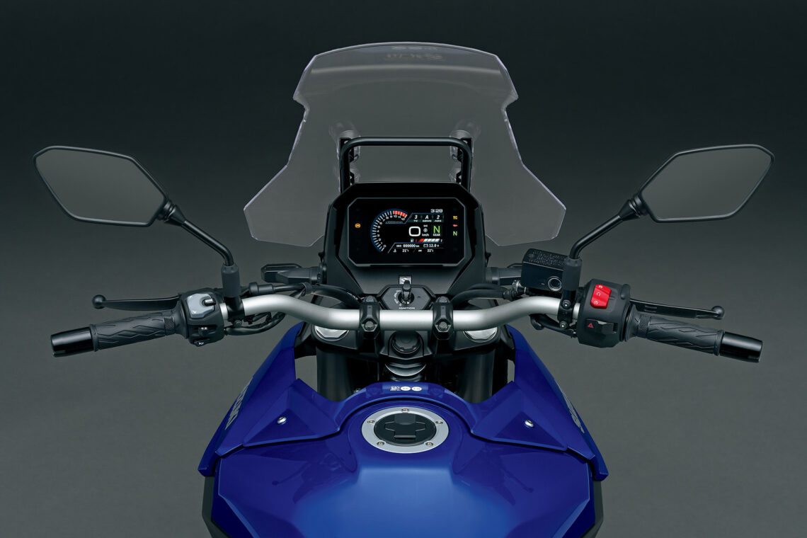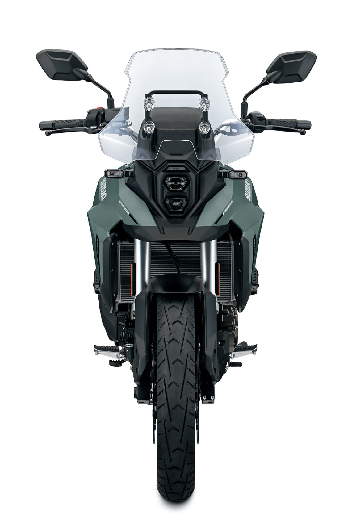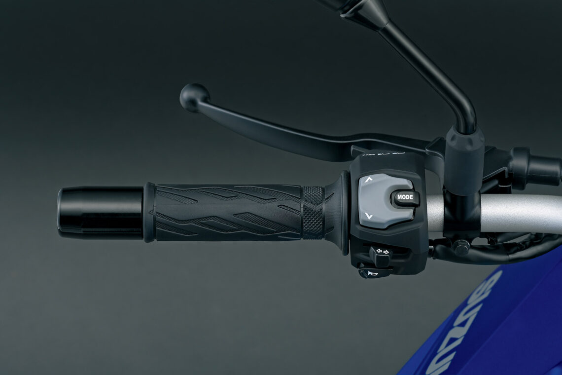 Monta una instrumentación TFT a color de 5" perfectamente legible, con dos modos de visualización. Por supuesto, viene con luces full-LED, puerto USB de carga tipo A mientras que su estética sigue la línea mostrada por su hermana, con un concepto robusto que se inspira en las antiguas DR-Z, un faro delantero muy particular y un equilibrio muy conseguido en todas sus partes.