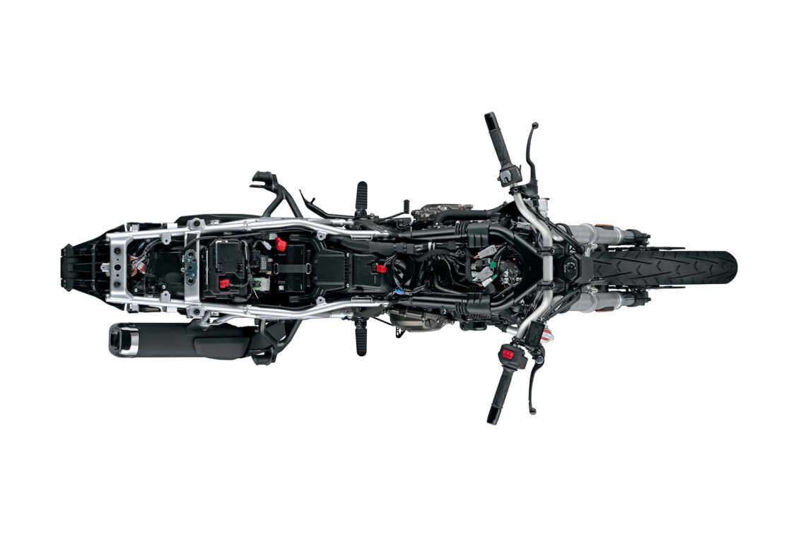 Su corazón es el motor de dos cilindros en paralelo de 776 cc con doble árbol de levas, 4 válvulas por cilindro, 62 kW (83, 14 cv) de potencia a 8.500 rpm y 78 Nm de par a 6.800 rpm. Se trata de un modelo que es limitable para el carnet A2. Sus prestaciones la hacen muy capaz tanto para realizar un agradable recorrido diario por la ciudad como para transitar pistas y caminos o descubrir increíbles lugares en tus viajes más ambiciosos. Se inserta en un chasis multitubular de acero con subchasis y basculante de aliminio. El depósito de gasolina se queda en 20 litros de capacidad. Atrás encontramos una bandeja de soporte para equipaje, con asideros para el pasajero