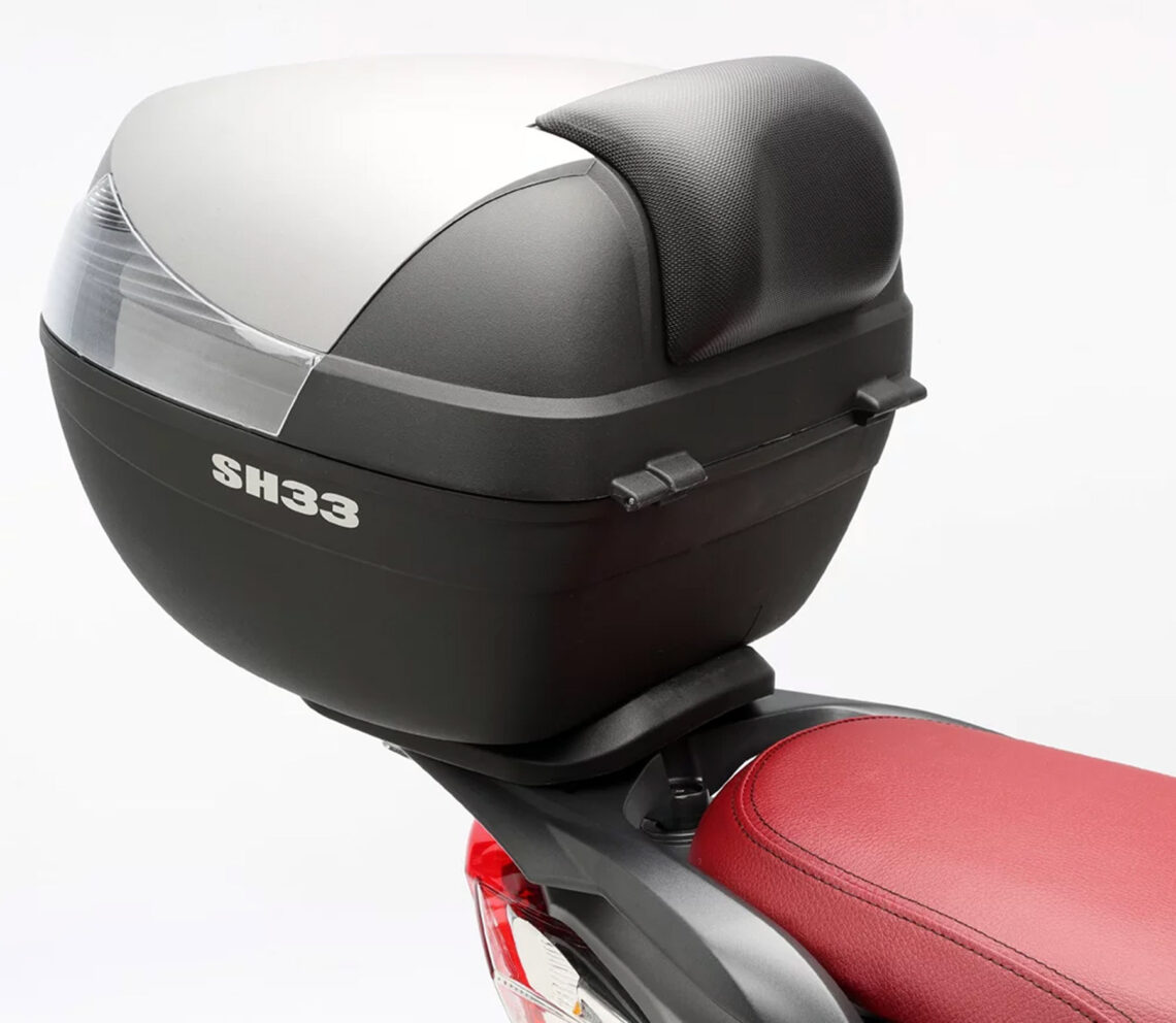 No es para menos, ya que se trata de uno de los scooter 125 más equilibrados y con mejor relación calidad-precio del mercado. Su principal identidad está en que, a pesar de sus dimensiones compactas, tiene capacidad para dos cascos integrales, ya que puedes guardar uno bajo el asiento y otro en el baúl Shad SH33 que trae de serie (33 litros). Hay que sumarle también el espacio de la guantera delantera con toma USB.