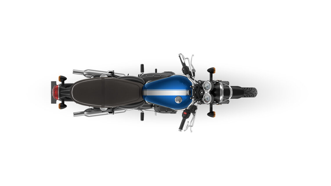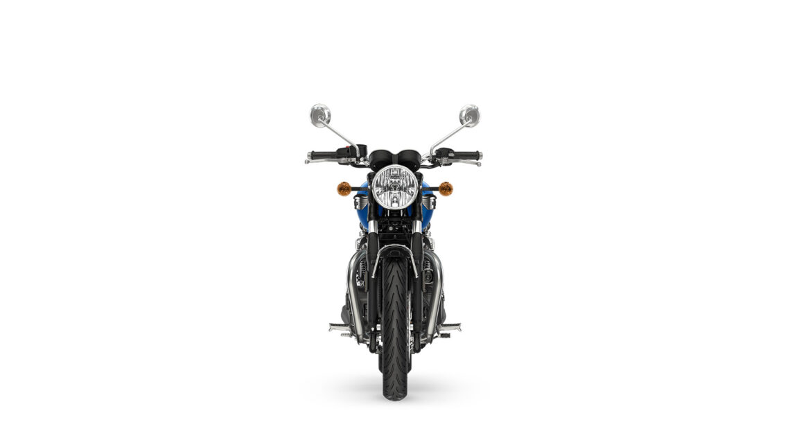 La Triumph T100 Chrome Edition tiene como principal elemento un depósito en azul Cobalt Blue con una franja metálica. Aparte, cuenta con detalles como el color negro Jet Black aplicado en los guardabarros, los paneles laterales y la tulipa del faro delantero. Entre los accesorios disponibles como extra, destaca una pequeña pantalla en Cobalt Blue a juego.