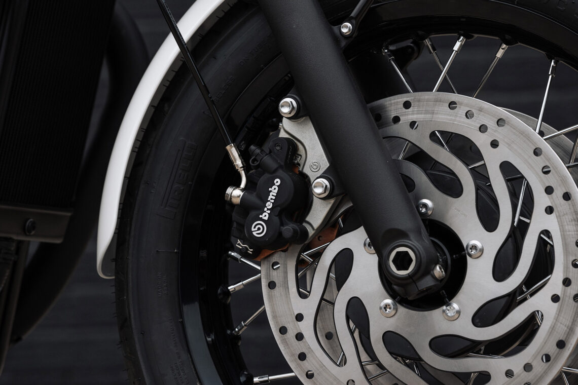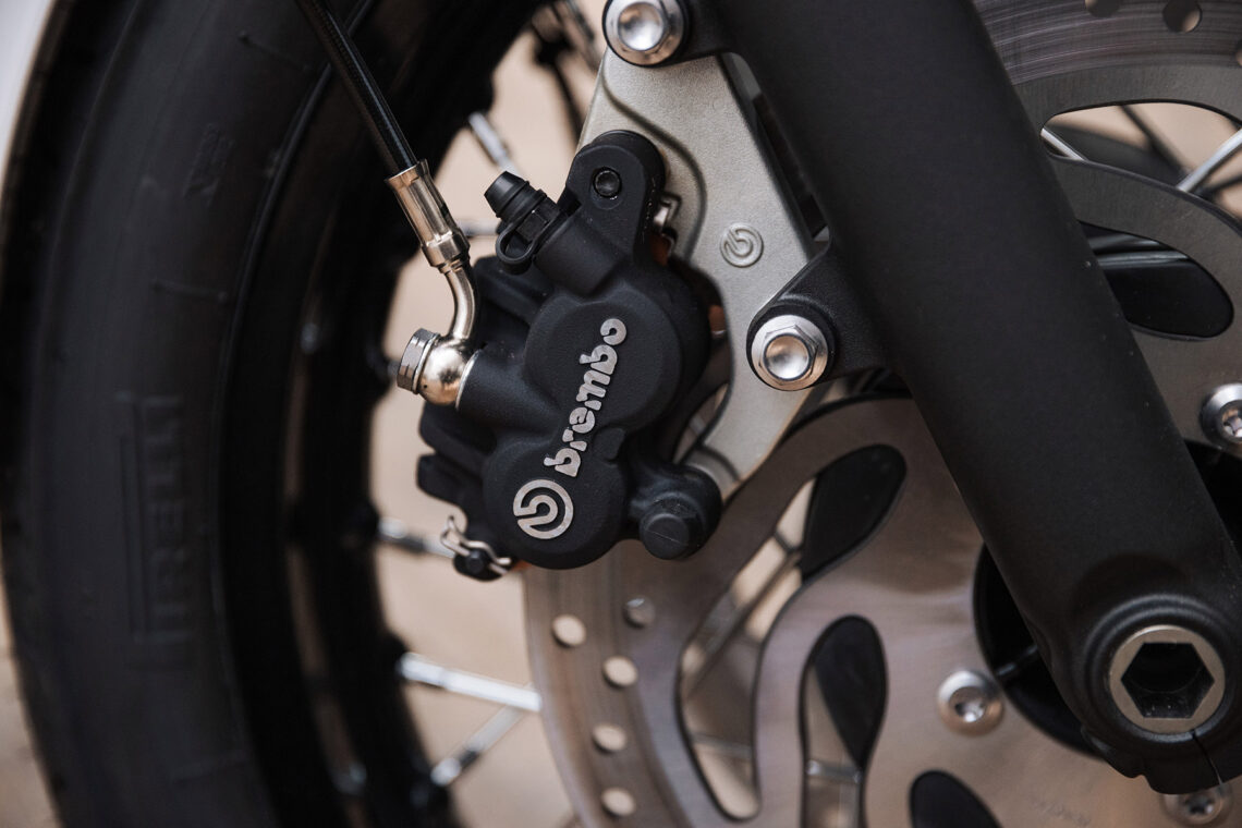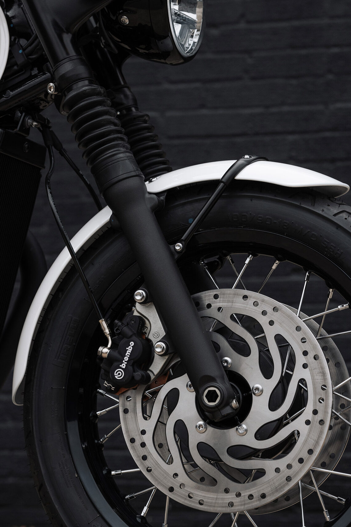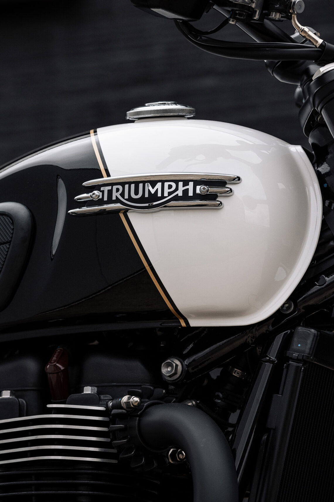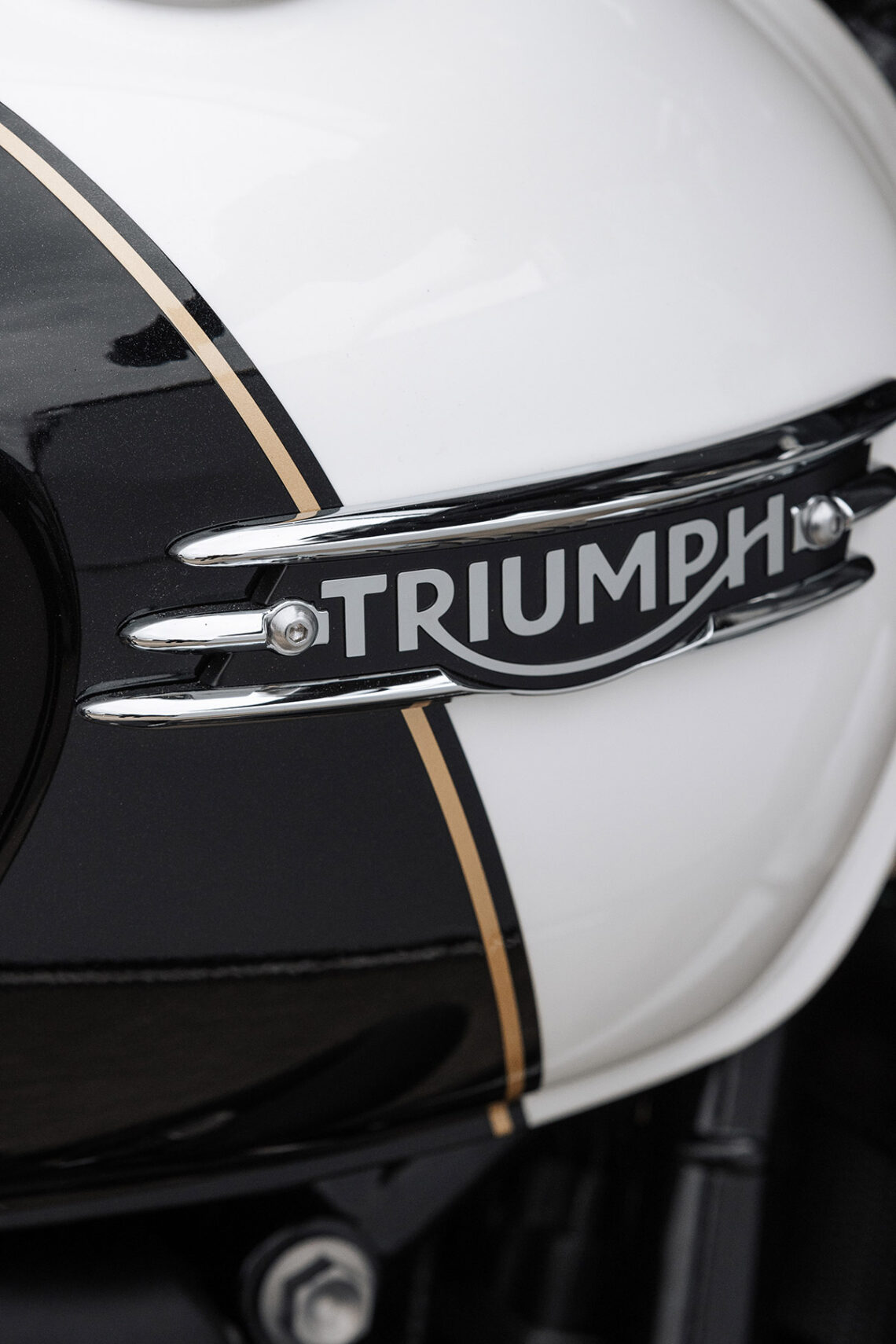 Por lo demás, este modelo es idéntico a la Triumph Bonneville T120 Black, que destaca por el buen rendimiento del motor bicilíndrico en línea 'High Torque' refrigerado por líquido de 1200 cc que rinde 105 Nm de par máximo a tan solo 3.500 rpm y su potencia máxima es de 80 CV a 6.550 rpm. También es muy fácil de manejar gracias a su reducción de peso (-7 kg) respecto a la anterior generación. Equipa frenos con doble disco delante con pinzas Brembo de dos pistones asistido por un ABS de última generación. Hablando de tecnología, dispone de control de tracción desconectable, control de velocidad, modos de conducción Rain y Road, embrague asistido anti-rebote, inmovilizador en la llave, toma USB bajo el asiento y cableado preparado bajo el manillar listo para instalar puños calefactables. Delante encontramos luz diurna DRL LED.