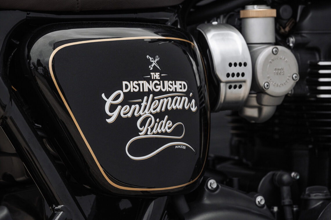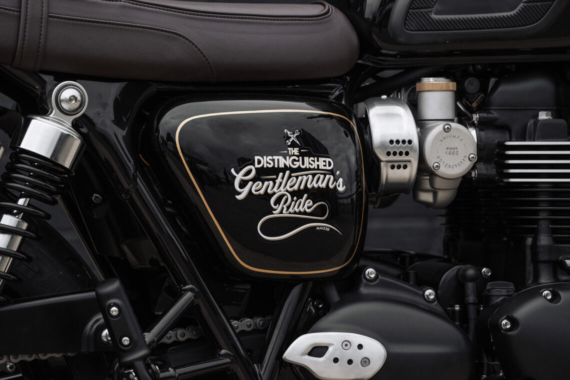 Triumph se convirtió en patrocinador oficial del DGR en 2014, logrando impulsar la participación y la recaudación. Para celebrar estas diez ediciones de la marca británica junto al Distinguished Gentleman's Ride y Mark Hawwa, se ha presentado la Triumph Bonneville T120 Black Distinguished Gentleman's Ride Limited Edition. Sólo existen 250 unidades exclusivas de esta edición limitada que se caracteriza por su elegante esquema de pintura en blanco Crystal White y negro metalizado Phantom Black inspirado en los trajes de caballero que marca el protocolo para una cena de gala, el logotipo oficial del DGR en el depósito y los paneles laterales, además de diversas líneas doradas pintadas a mano en el depósito de combustible y en los paneles laterales y un asiento marrón con correa. Además, mantiene los detalles propios de la variante Triumph T120 Black, con detalles y componentes oscurecidos en los aros de las ruedas, el asa del pasajero, las tapas del motor, los espejos, el aro del faro delantero, los intermitentes y el sistema de escape.