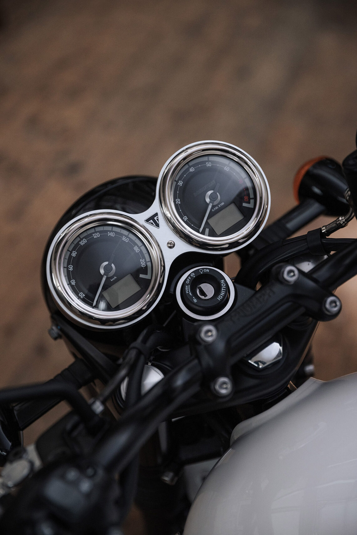 Por supuesto, la silueta sigue siendo inconfundible de la familia Bonneville y el poderío estético de la familia T120. La instrumentación está formada por dos esferas y pantallas digitales con la información necesaria.