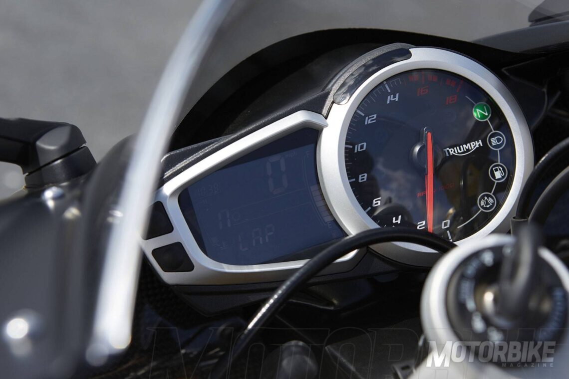 | Panel de Instrumentos y Funciones | Panel de instrumentos combinado de LCD con velocímetro digital, contador parcial, tacómetro analógico, cronómetro, indicador de marcha engranada, testigo programable de cambio de marchas, e indicador de ABS desconectable. |