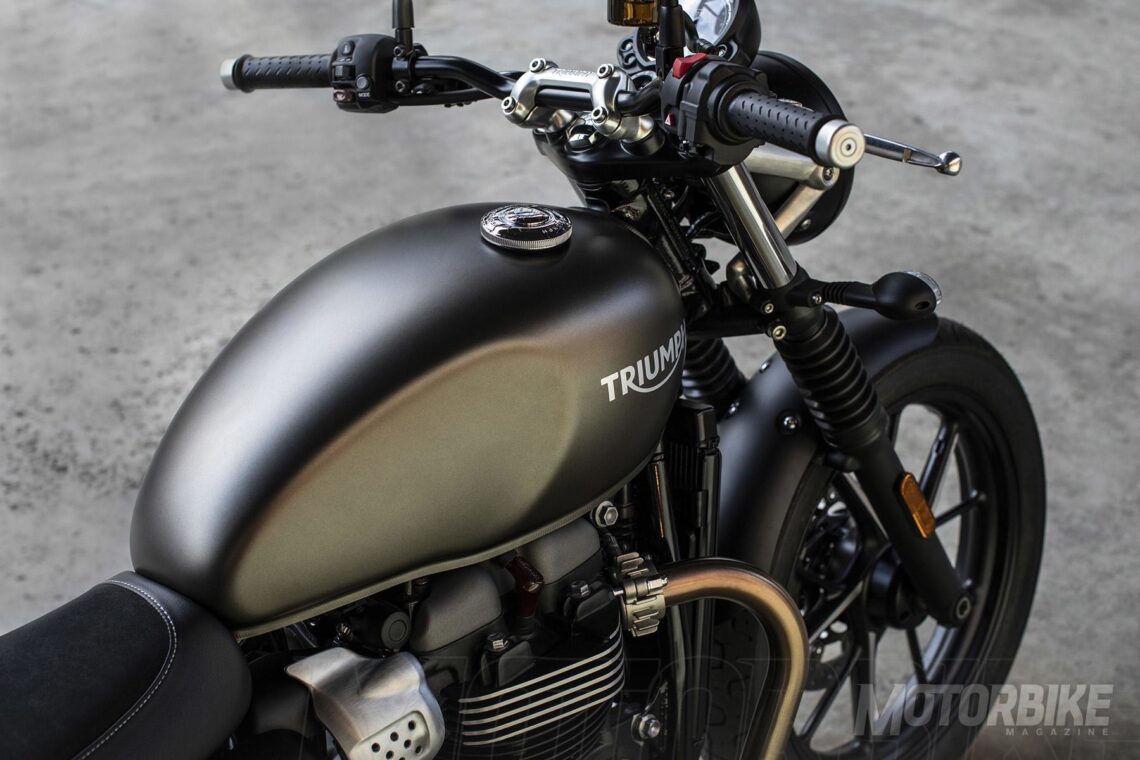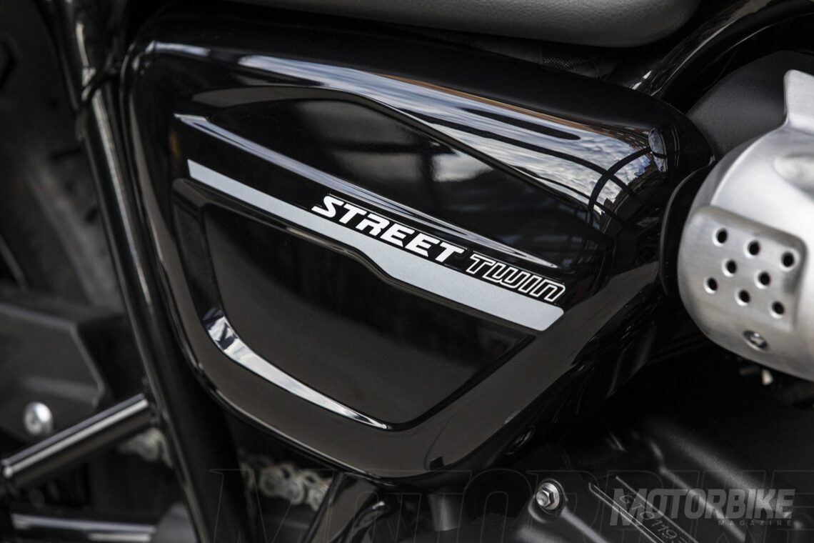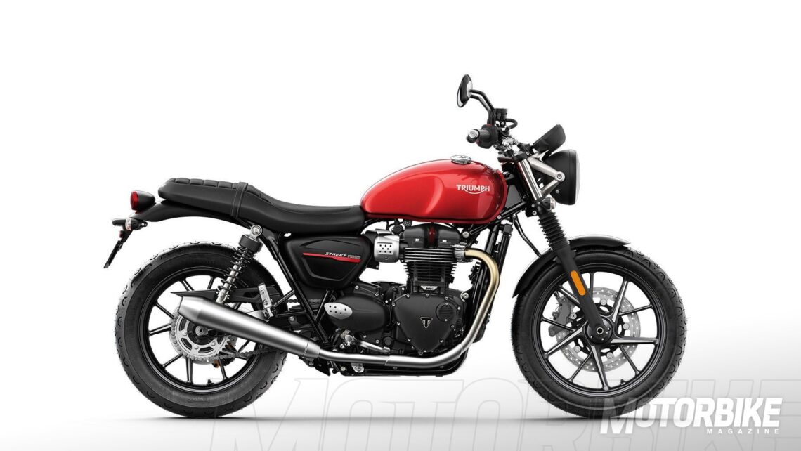 El estilo retro de la Triumph Street Twin sigue impoluto pero se adereza de detalles modernos. Ahora cuenta con un nuevo logotipo de 'Street Twin' visible en los laterales. También hay novedades en el estilo del panel de instrumentos con un nuevo marco a juego con el embellecedor metálico de Bonneville y la esfera en acabado color plata translúcido con los testigos más integrados. Se han hecho más cambios: Nuevo soporte del faro delantero de aluminio cepillado, nuevos emblemas del depósito, nuevo diseño del asiento, con el interior de doble componente y el exterior con una confección inspirada en la piel, con un buen tacto y agarre y un acabado duradero, nuevos detalles mecanizados en el faro. La retro vintage está en tres esquemas de color: Matt Ironstone, Korosi Red y Jet Black.