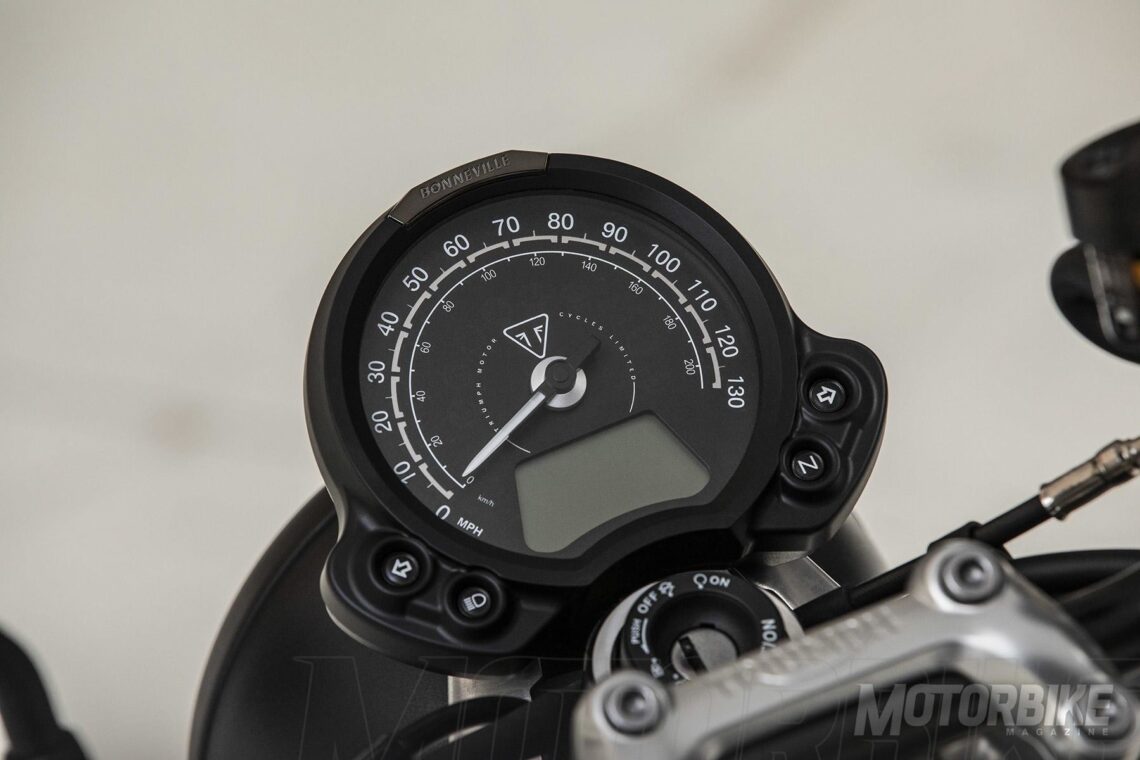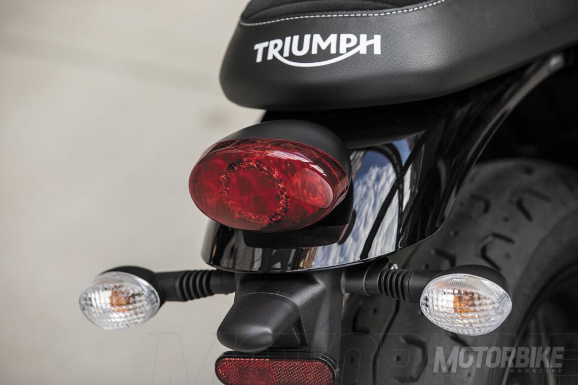 La Triumph Street Twin 2019 se caracteriza también por la tecnología que integra, ahora con acelerador electrónico que le permite tener dos modos de conducción Road y Rain (diferentes mapas de inyección y control de tracción), sistema de monitorización de la presión de los neumáticos TPMS (opcional), embrague asistido, faro trasero LED, inmovilizador de serie y toma auxiliar USB.