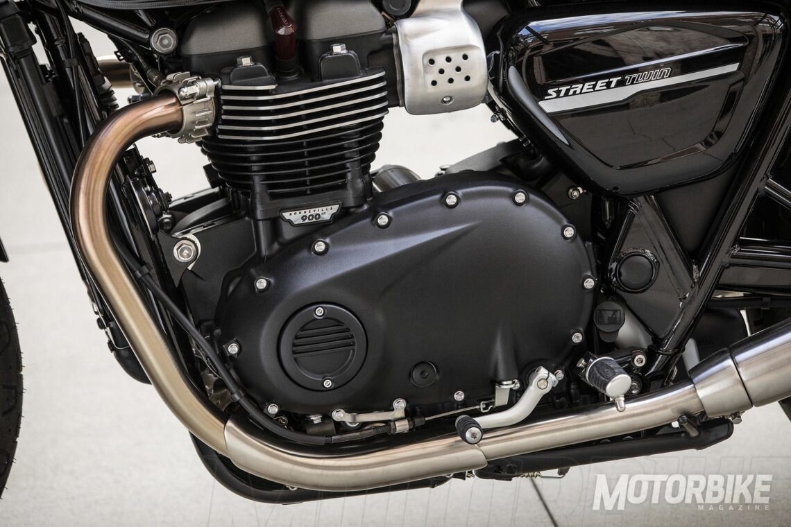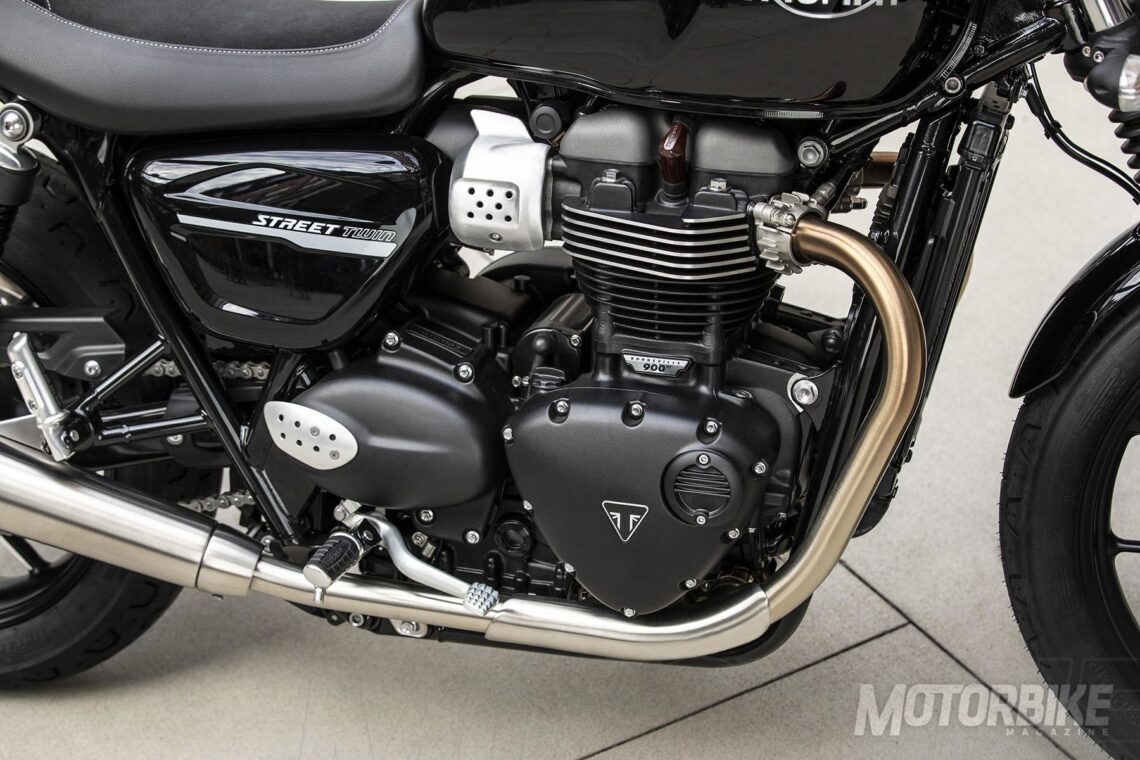 La Triumph Street Twin ha sido todo un éxito desde su lanzamiento. Ahora da un paso adelante en muchos campos. Para empezar, su motor bicilíndrico en línea de 900 cc se ha actualizado con nueva tapa de balancines de magnesio, nuevo cigüeñal, eje de equilibrado y balancines aligerados, nueva tapa de embrague de masa optimizada y nuevo embrague más ligero. Con todo ello, se aumenta 10 cv alcanzando 65 cv, un 18% más que el modelo anterior. El rango de revoluciones asciende 500 rpm haciendo pico en 7500 rpm y desarrollando 80 Nm de par a sólo 3800 rpm. Además, este motor se puede limitar para el carnet A2 con puño APS.
